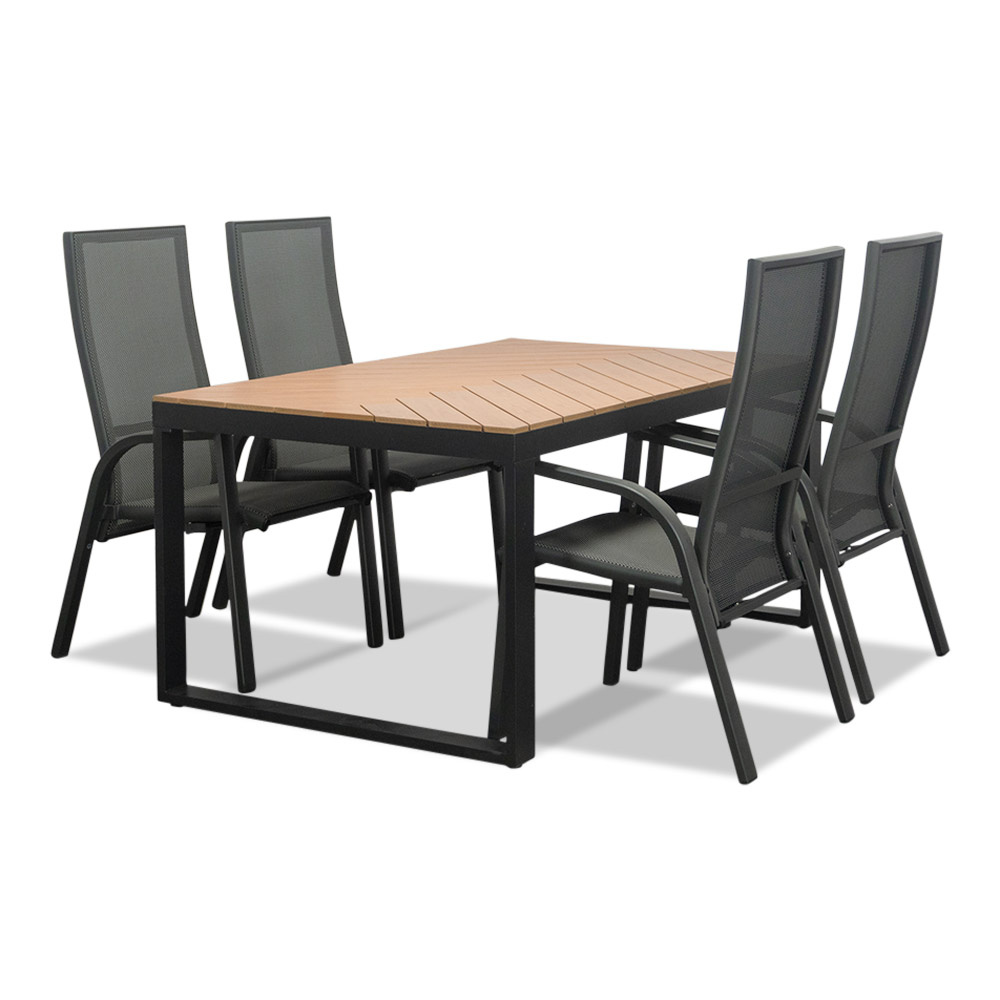 Kampa Natural/Mojito Negro dining tuinset 5-delig | polywood + textileen | 160cm