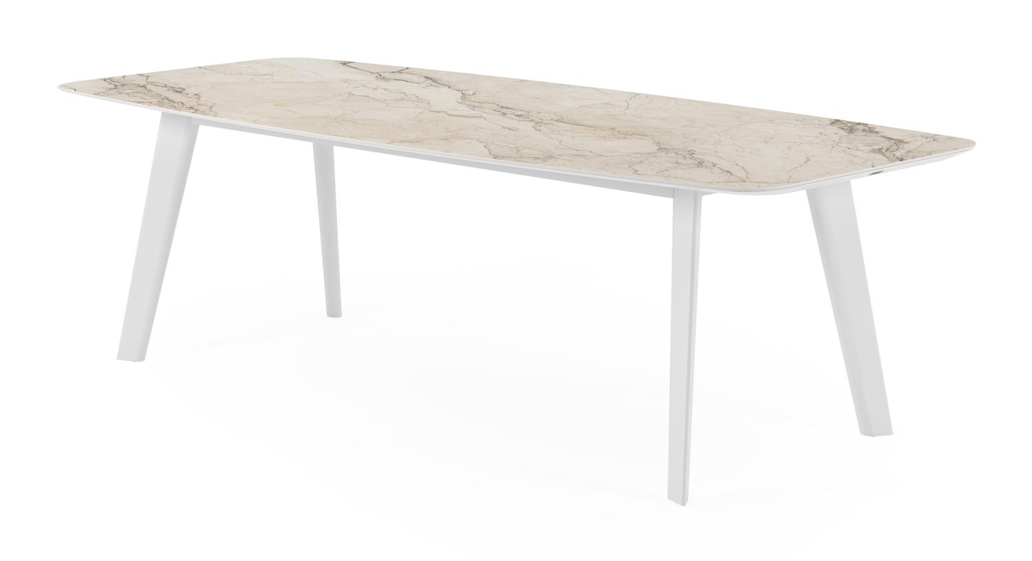 De Lacrima tuintafel bootvorm in wit aluminium en volkeramiek colorado dunes – L 255 x B 115 x H 73 cm is van het merk Bristolà la carte en is hier verkrijgbaar in de kleur wit/beige.