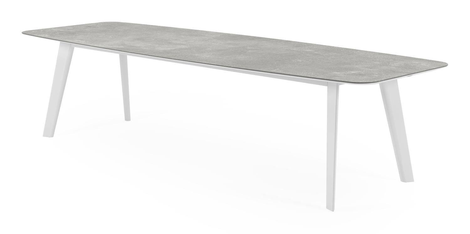 De Lacrima tuintafel bootvorm in wit aluminium en volkeramiek new york – L 315 x B 115 x H 74 cm is van het merk Bristolà la carte en is hier verkrijgbaar in de kleur grijs/wit.