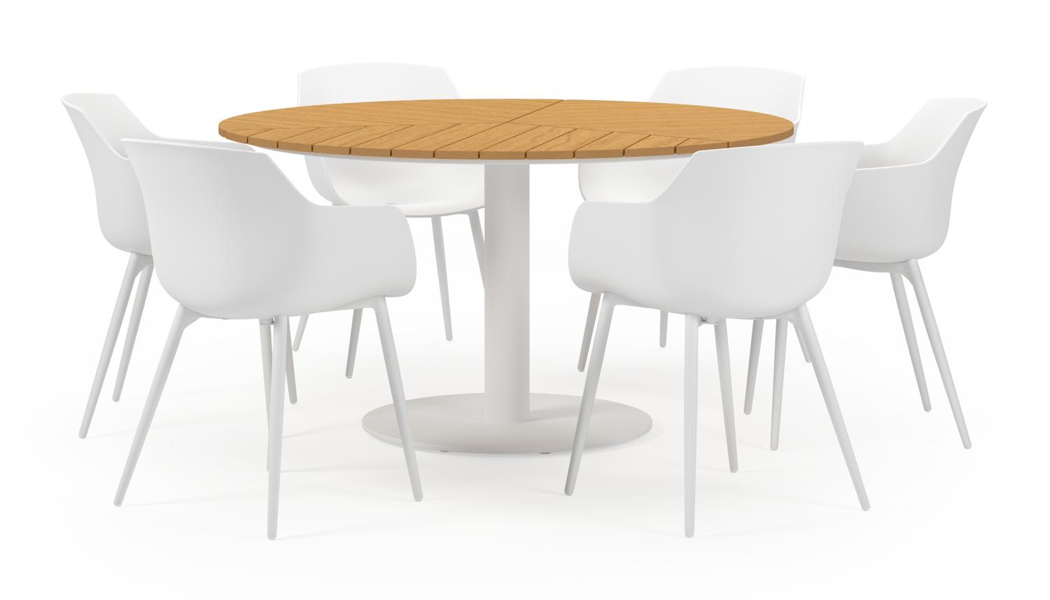 Lagos tuinset in wit aluminium en polywood tafelblad met 6 Paco tuinstoelen