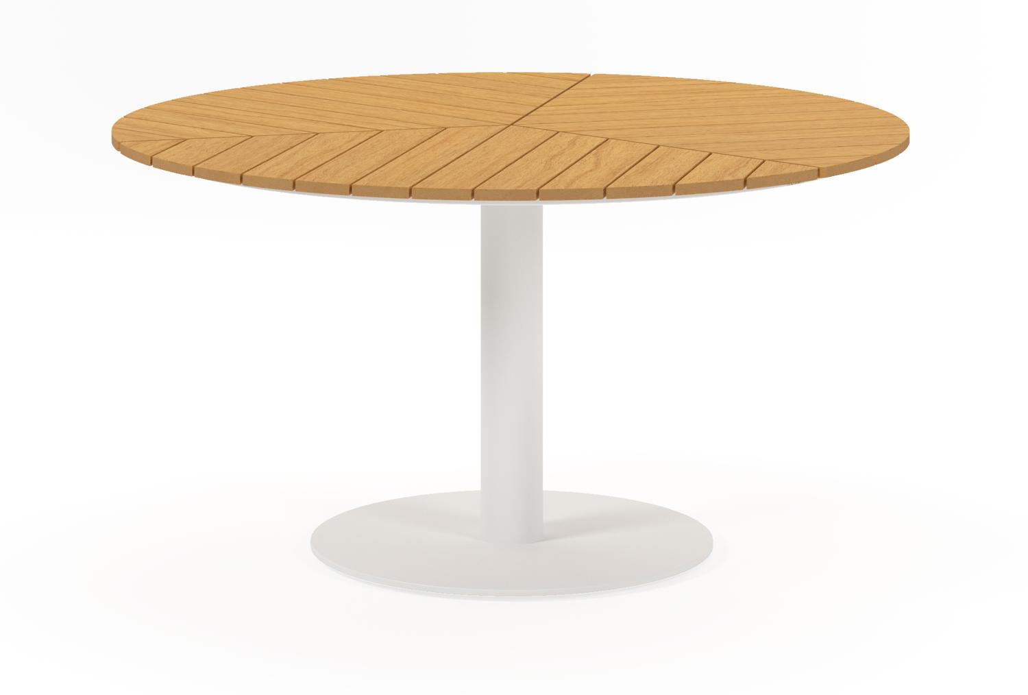 De Lagos tuintafel rond in wit aluminium en polywood – Dia. 140 x H 74 cm is van het merk Vinci en is hier verkrijgbaar in de kleur naturel/wit.
