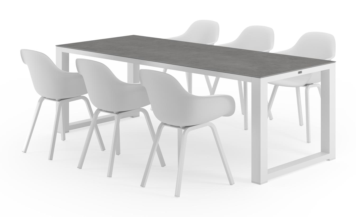 De Livo tuinset in wit aluminium en grijs volkeramiek tafelblad met 6 Puglia tuinstoelen is van het merk Bristol Essentials en is hier verkrijgbaar in de kleur grijs/wit.