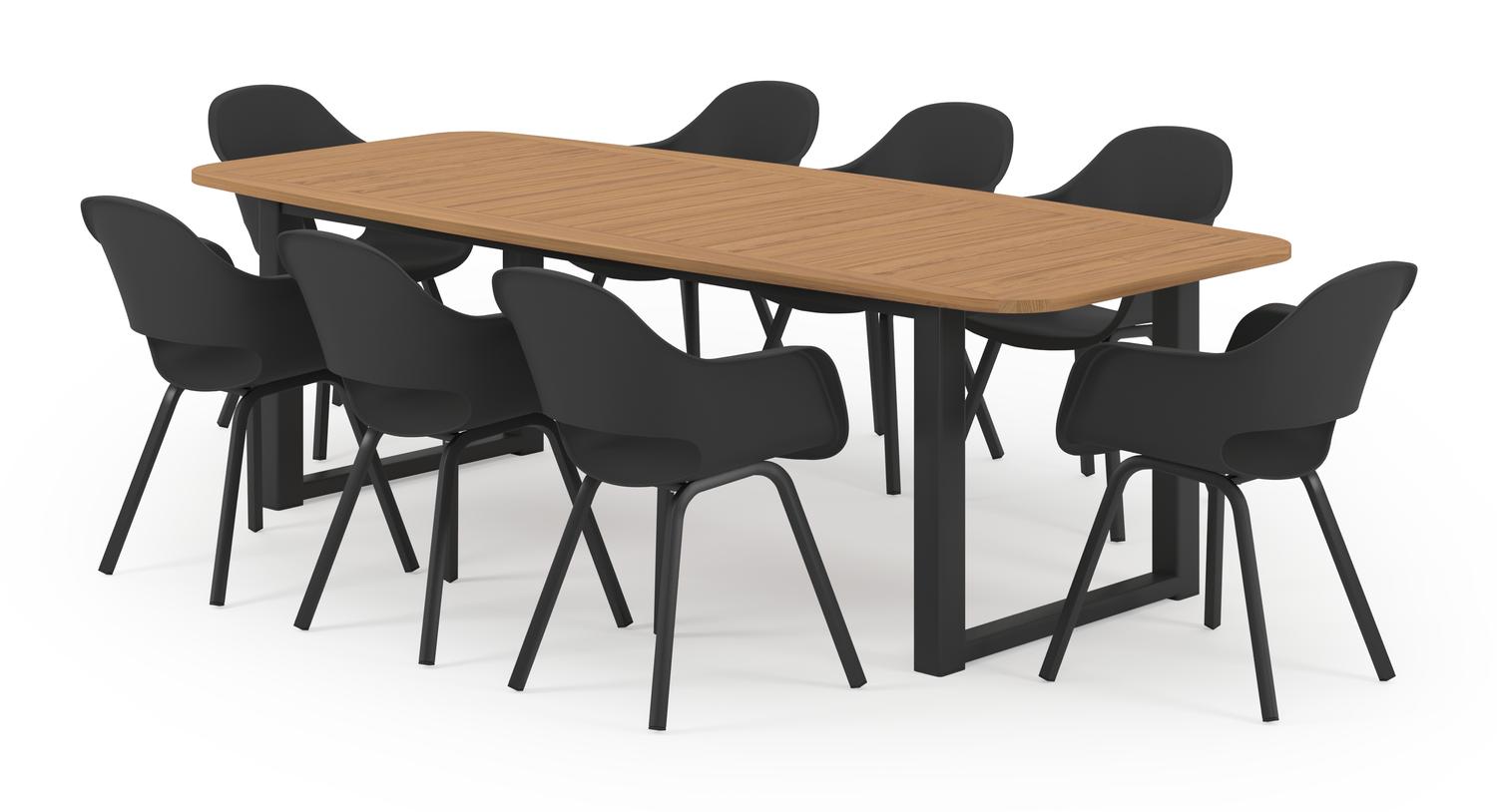 Livo tuinset in zwart aluminium en natural finish teak tafelblad met 8 Artena tuinstoelen