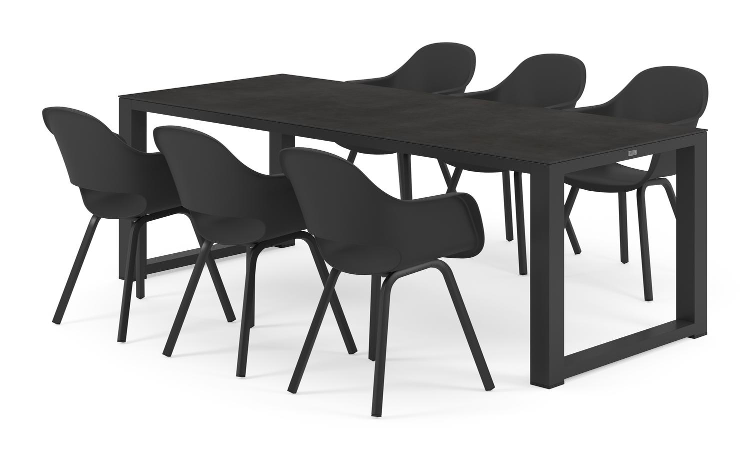 De Livo tuinset in zwart aluminium en zwart volkeramiek tafelblad met 6 Artena tuinstoelen is van het merk Bristol Essentials en is hier verkrijgbaar in de kleur zwart.