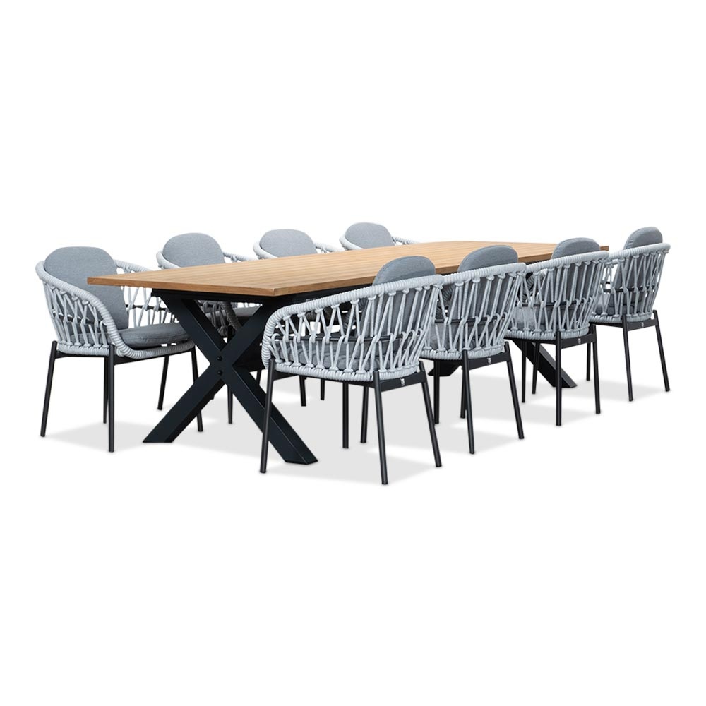 De Lucan/Bari wit dining tuinset 9-delig is van het merk lux outdoor living en is hier verkrijgbaar in de kleur light teak, zwart, wit.