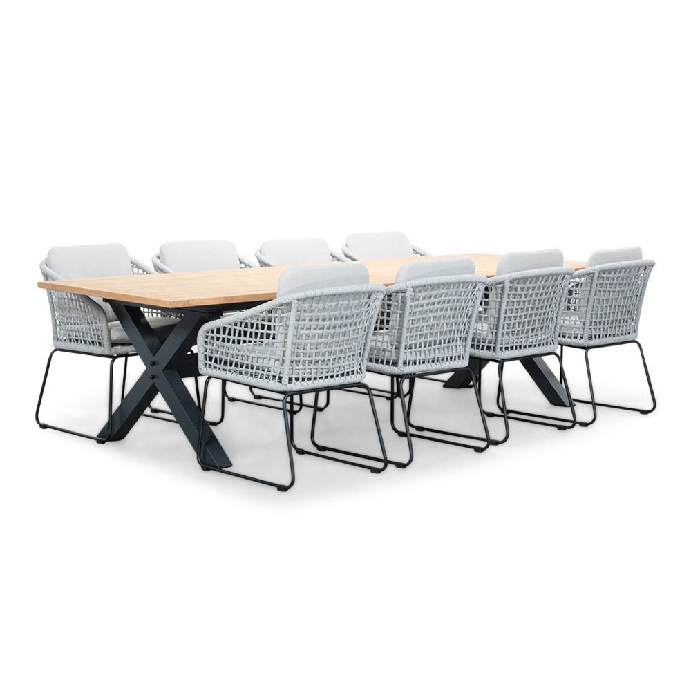 De Lucan/Tulum grijs dining tuinset 9-delig is van het merk lux outdoor living en is hier verkrijgbaar in de kleur lichtgrijs, light teak, zwart.