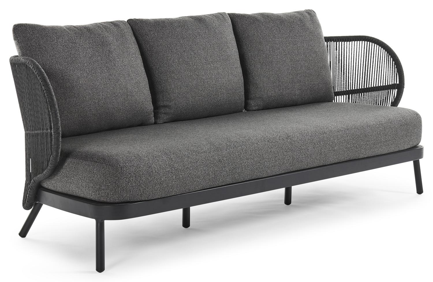 De Lugano loungebank 3-zit in zwart aluminium en zwart gedraaide ronde wicker met catania black all weather cosytica kussen is van het merk Bristolà la carte en is hier verkrijgbaar in de kleur zwart.