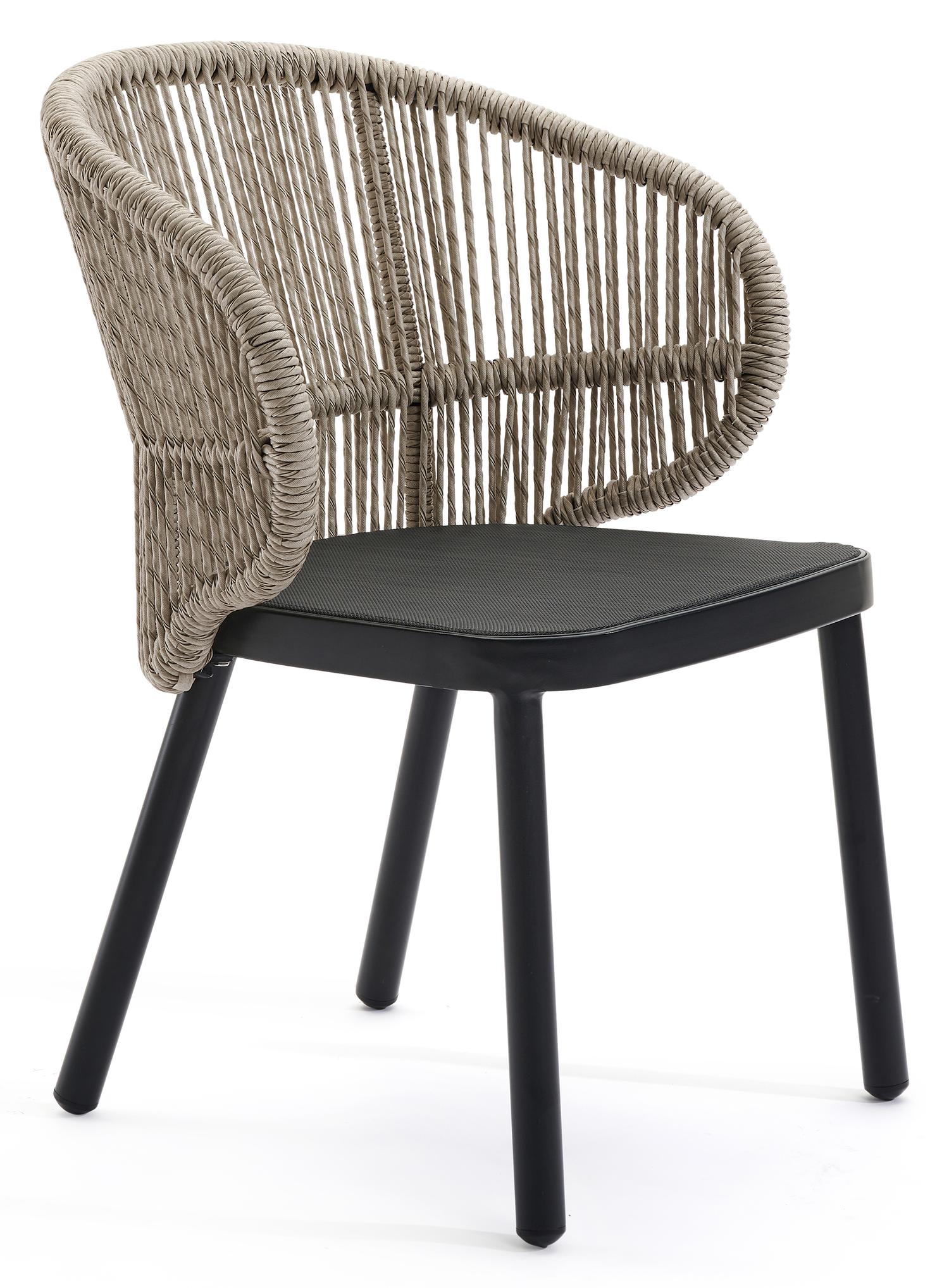 De Lugano tuinstoel in zwart aluminium en beige gedraaide ronde wicker is van het merk Bristolà la carte en is hier verkrijgbaar in de kleur zwart/beige.
