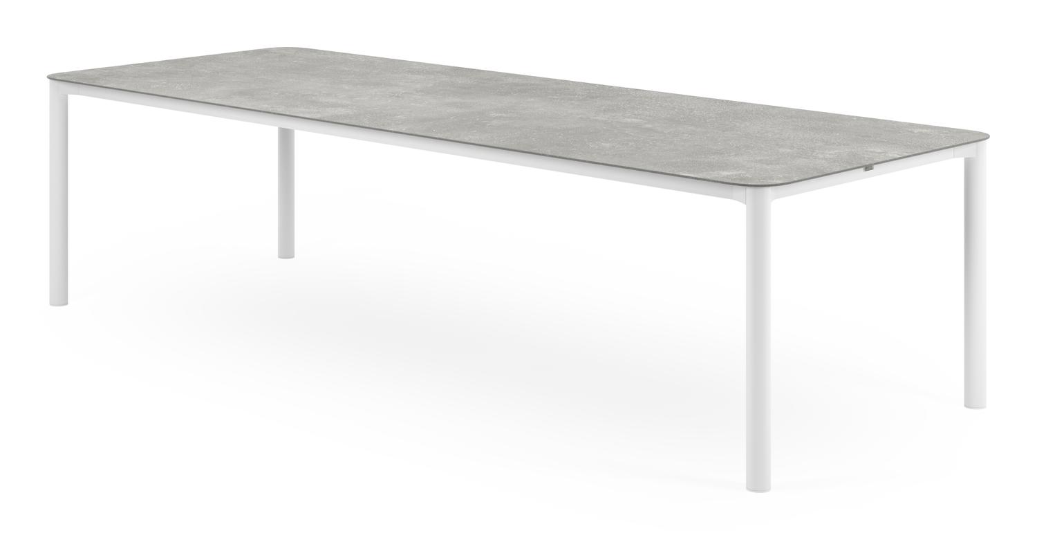 De Lugano tuintafel rechthoekig afgerond in wit aluminium en volkeramiek new york – L 290 x B 110 x H 73.5 cm is van het merk Bristolà la carte en is hier verkrijgbaar in de kleur wit/grijs.
