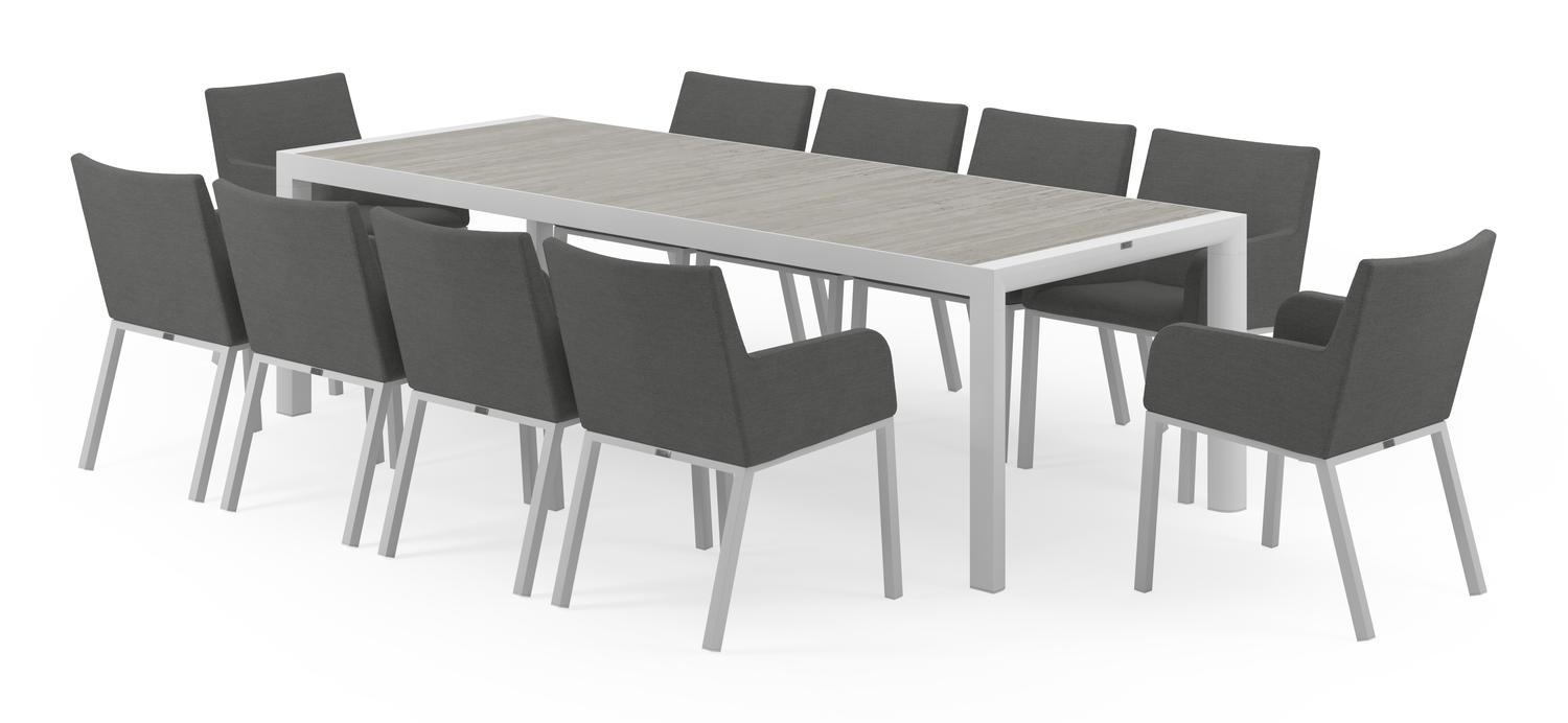 De Madura tuinset in wit aluminium en grijs keramische tegels tafelblad met 10 Rivo tuinstoelen is van het merk Bristol Essentials en is hier verkrijgbaar in de kleur grijs/wit.