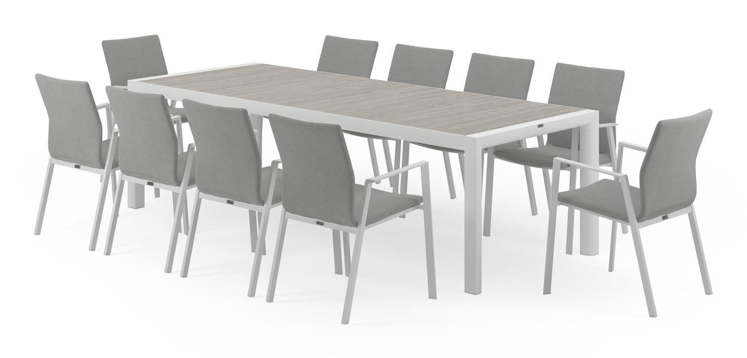 De Madura tuinset in wit aluminium en grijs keramische tegels tafelblad met 10 stapelbare Madura tuinstoelen is van het merk Bristol Essentials en is hier verkrijgbaar in de kleur grijs/wit.