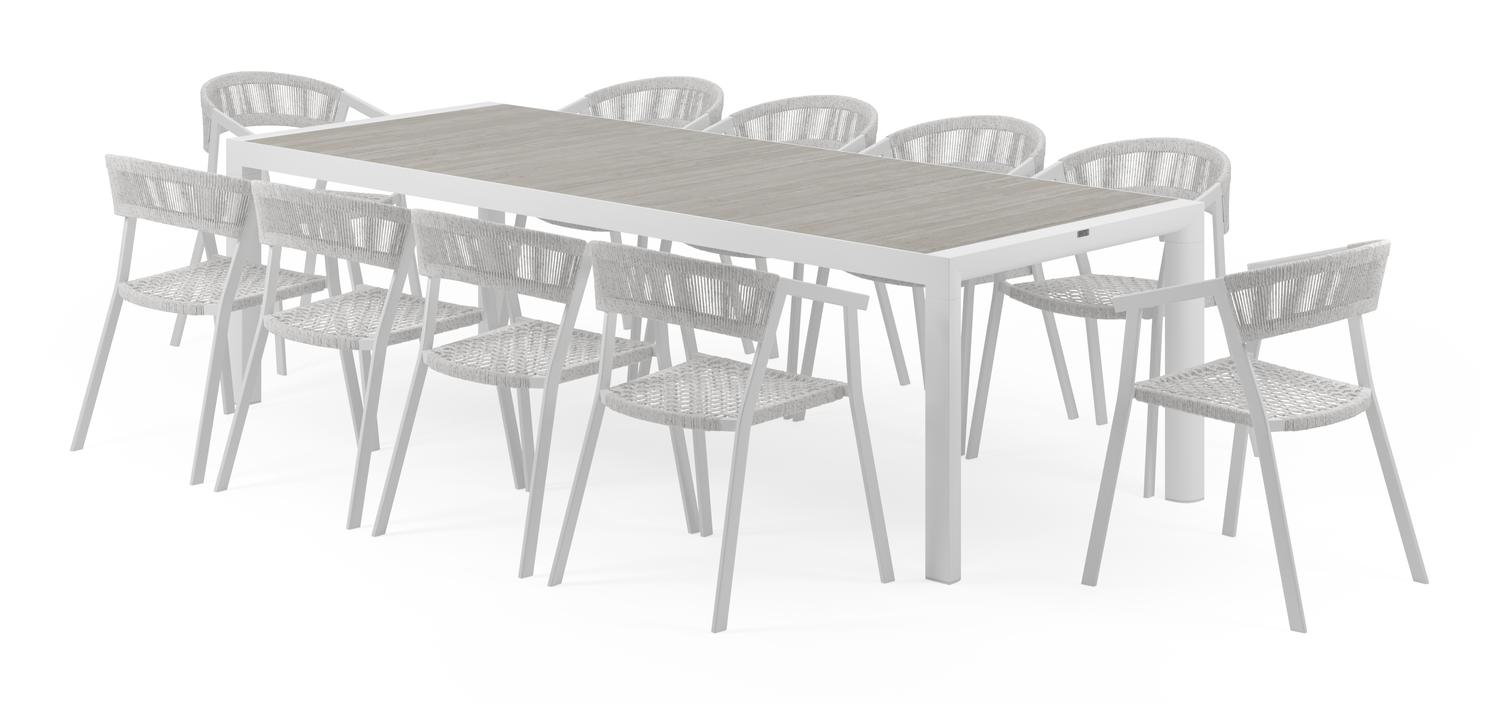 De Madura tuinset in wit aluminium en grijs keramische tegels tafelblad met 10 stapelbare Viaro tuinstoelen is van het merk Bristol Essentials en is hier verkrijgbaar in de kleur grijs/wit.