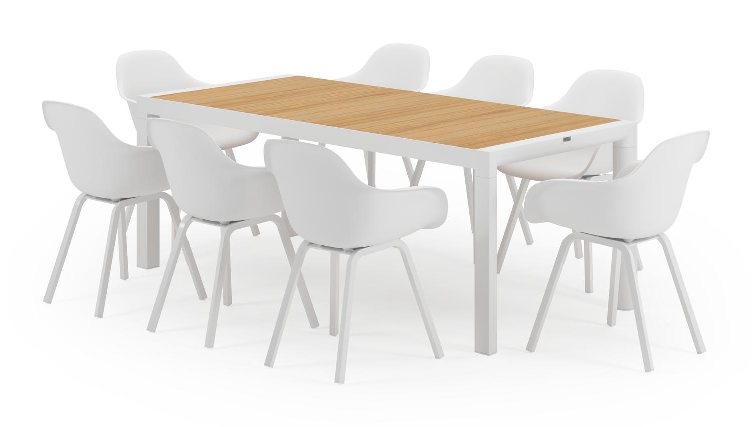 Madura tuinset in wit aluminium en teak tafelblad met 8 Puglia tuinstoelen
