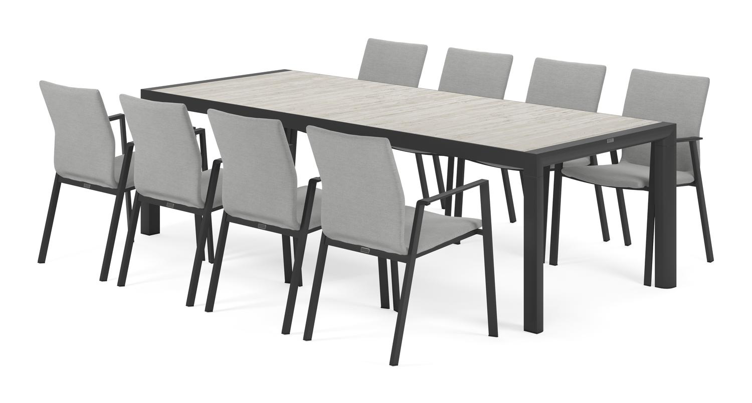 De Madura tuinset in zwart aluminium en grijs keramische tegels tafelblad met 8 stapelbare Madura tuinstoelen is van het merk Bristol Essentials en is hier verkrijgbaar in de kleur zwart/grijs.