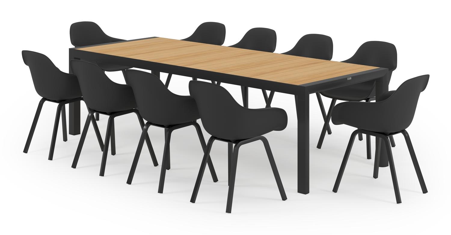 De Madura tuinset in zwart aluminium en natural finish teak tafelblad met 10 Puglia tuinstoelen is van het merk Bristol Essentials en is hier verkrijgbaar in de kleur zwart/naturel.