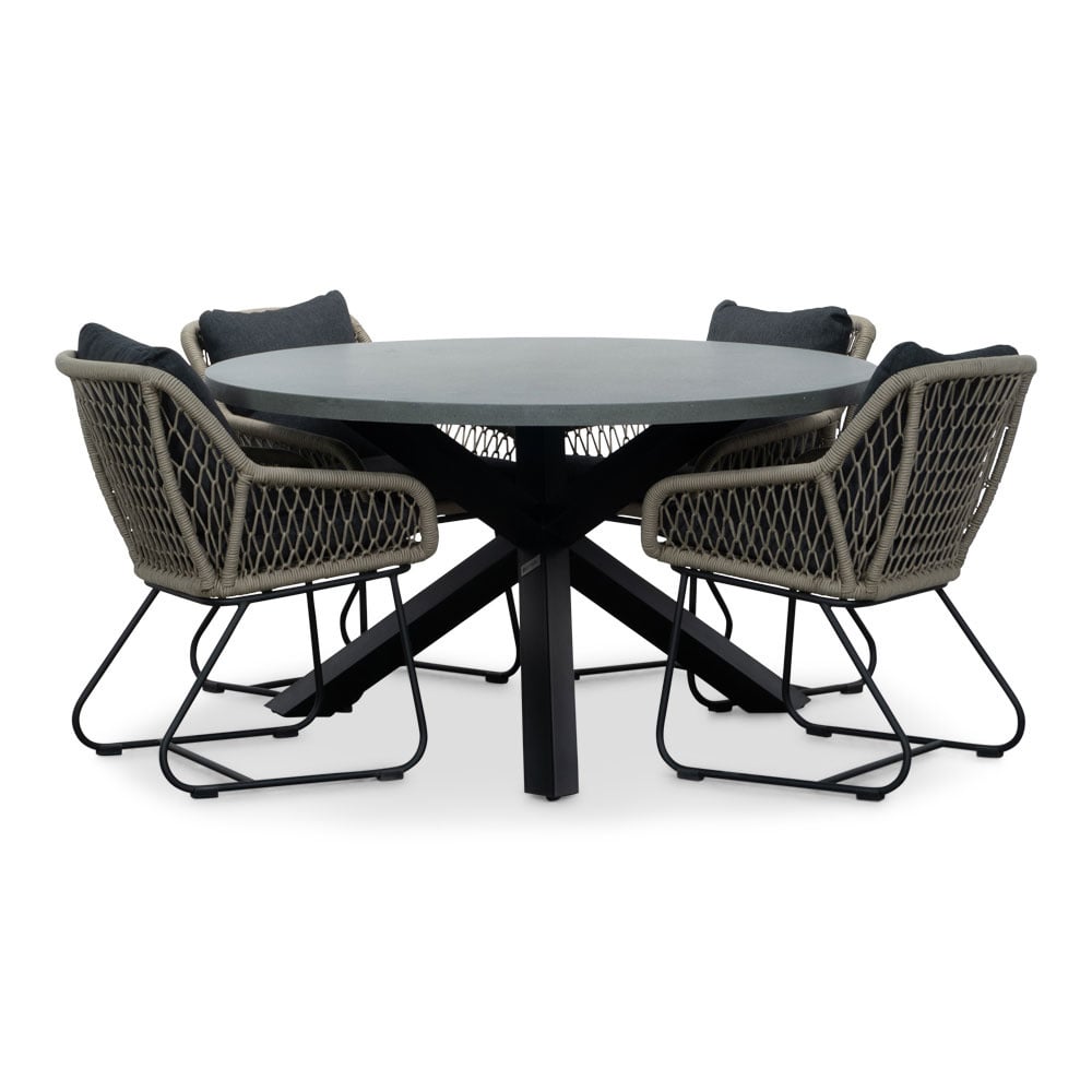 De Meran/Portofino zand dining tuinset 5-delig is van het merk buiten living en is hier verkrijgbaar in de kleur taupe – naturel – bruin, betonlook.