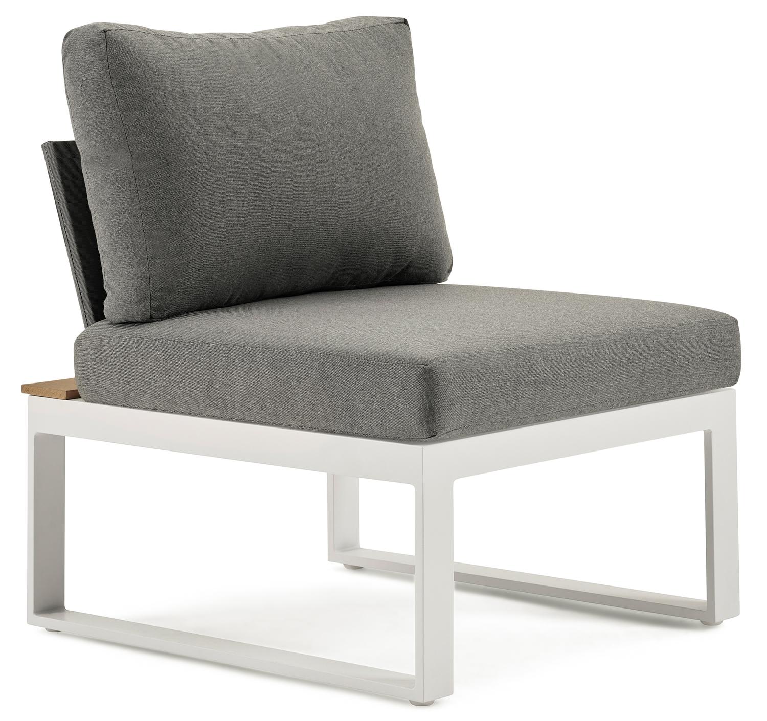 Productomschrijving Merida loungestoel in wit aluminium en wit aluminium met grijs polyester kussen