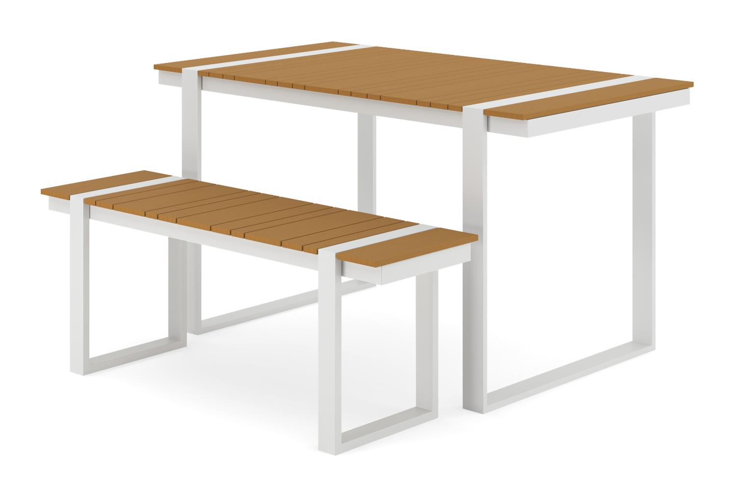 Merida loungetafel en bank in wit aluminium en polywood – L 123 x B 70 x H 69.5 cm