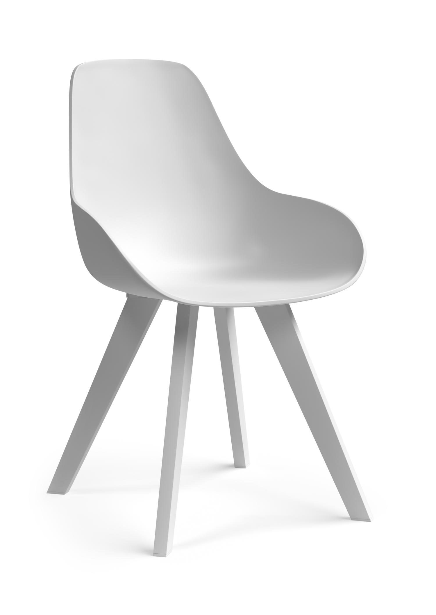 Kuipstoel met armleuningen. Poten in wit aluminium met zitting in witte polypropyleen kunststof. Totale afmeting: B 52,5 x D 50 x H 91 cm.