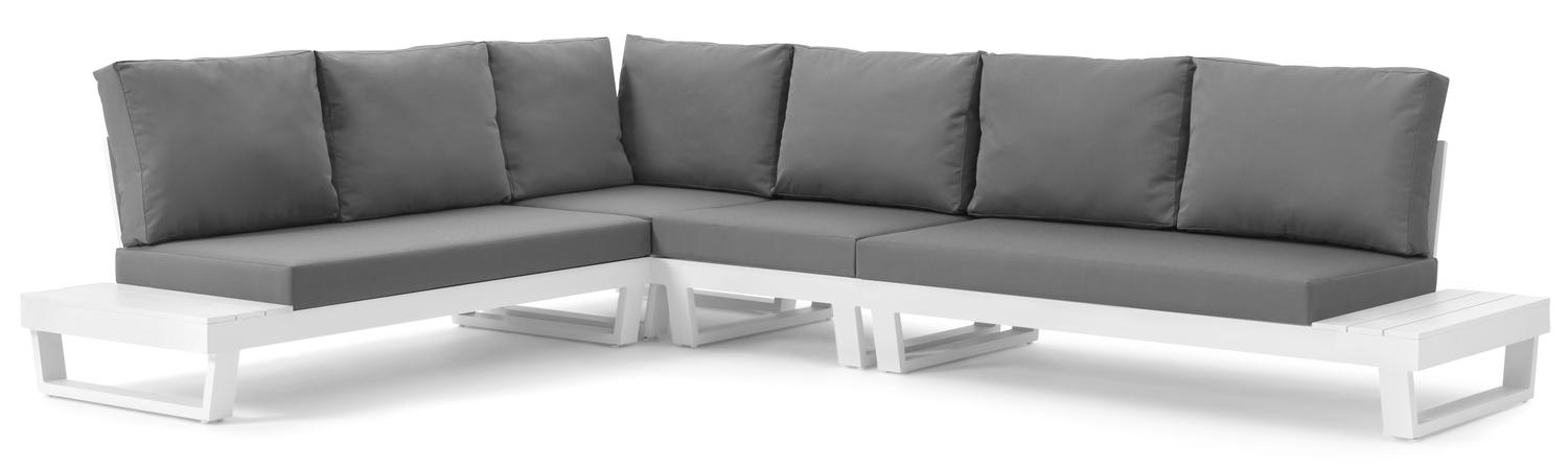 De Modica loungehoek in wit aluminium met grijs weather+ textileen kussens is van het merk Bristol Essentials en is hier verkrijgbaar in de kleur wit.