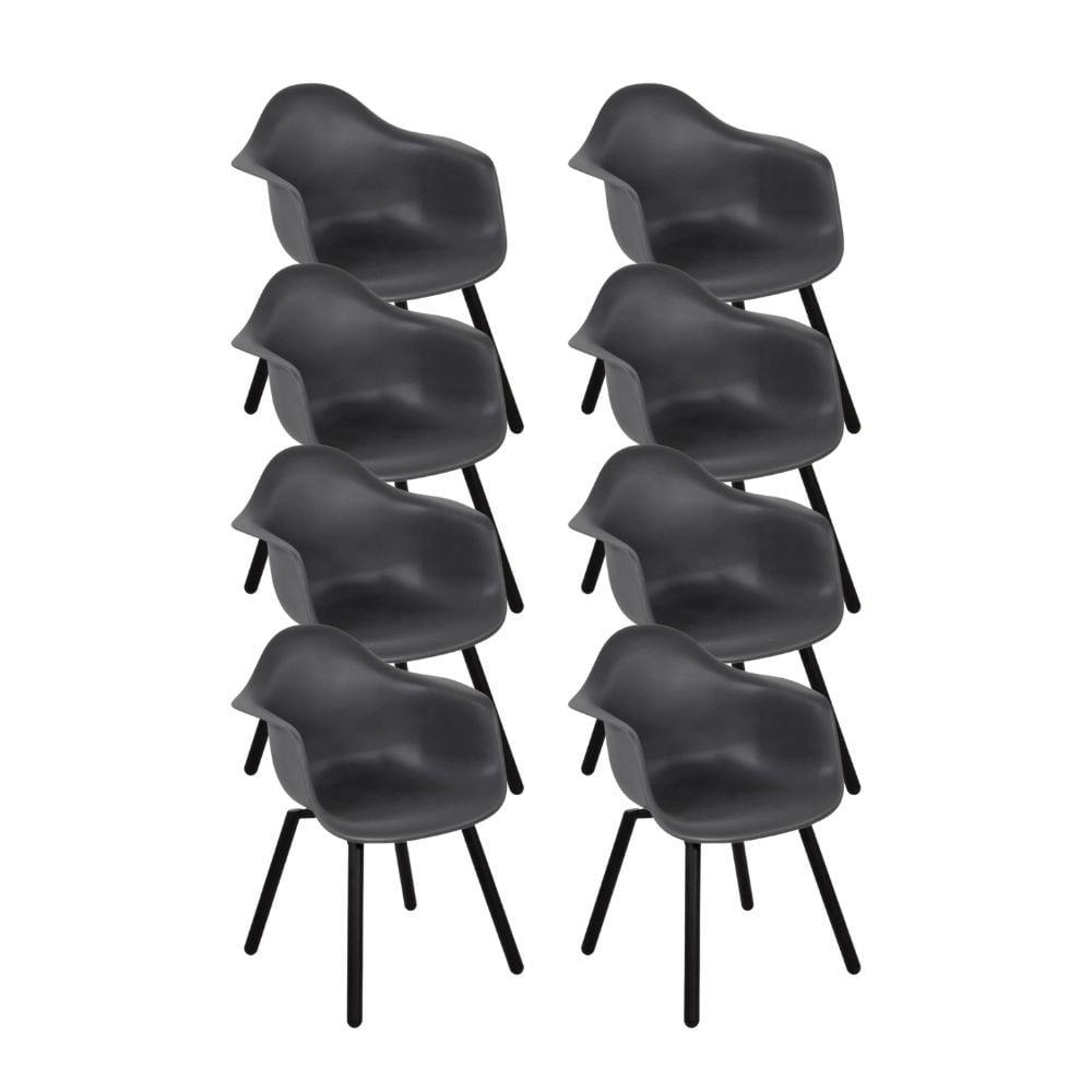 Montreux dining tuinstoel set van 8 | kunststof + staal | antraciet
