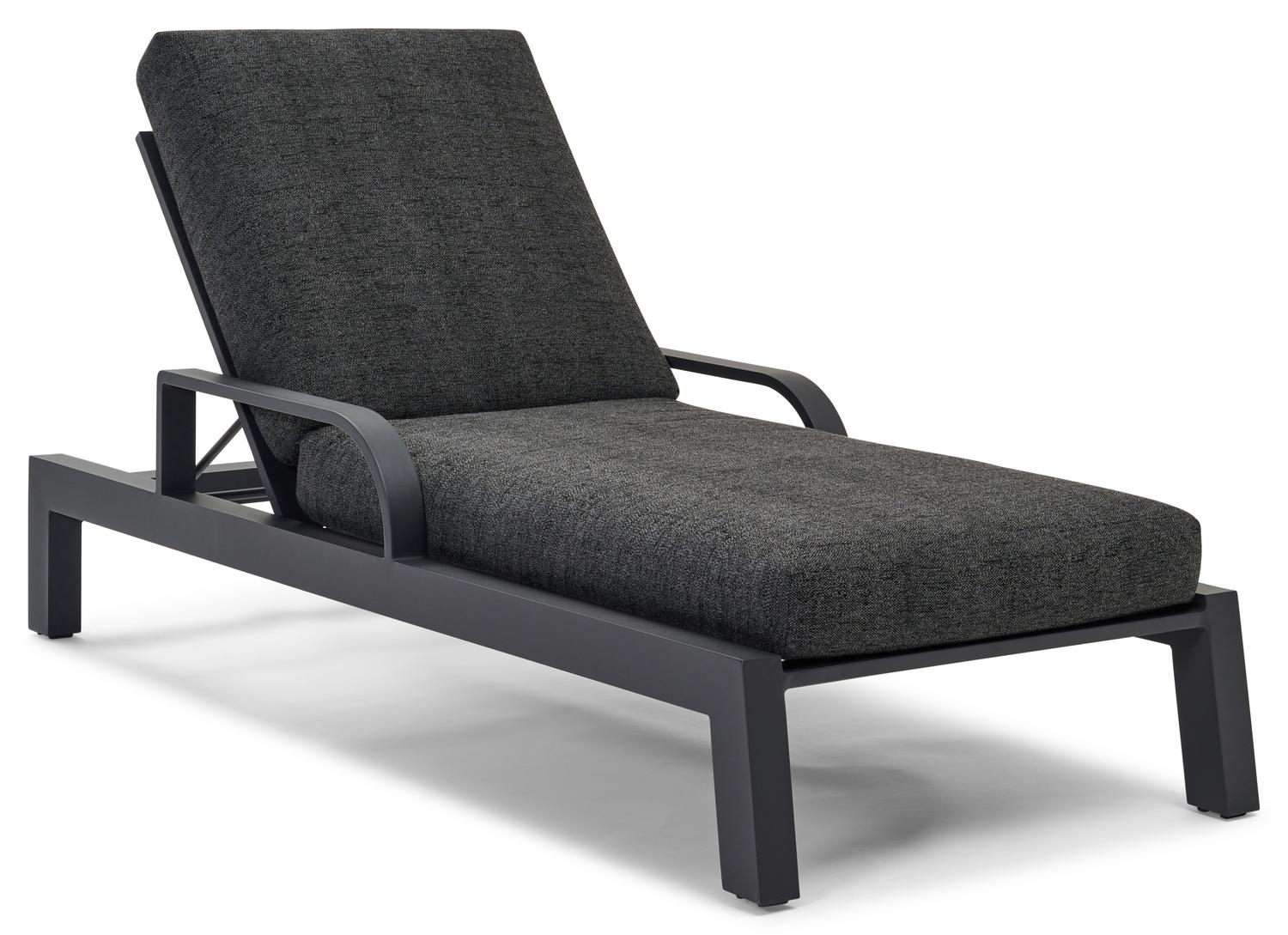 Productomschrijving Nano (Ruvo) verstelbaar ligbed in zwart aluminium met chartres sooty all weather sunbrella® luxe kussen met armleuning