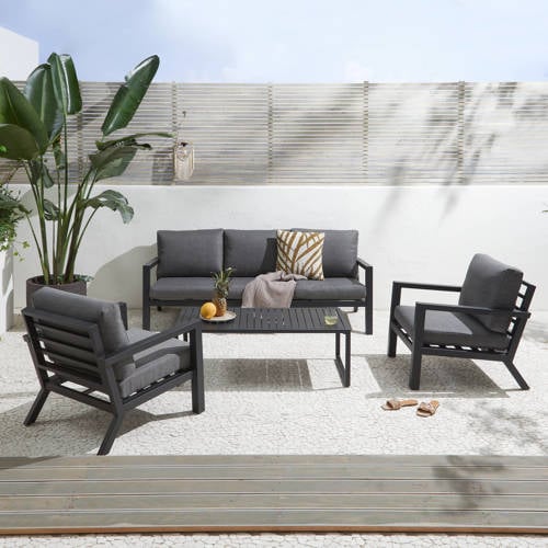 Lekker loungen op de loungeset Sanur van het merk NOUS Garden is geen straf. De loungeset Sanur bestaat uit een 3-zits loungebank in combinatie met 2 loungestoelen en een salontafel. De donkergrijze rug- en zitkussens hebben een dikte van 8 centimeter, wat zorgt voor een comfortabele zit. Het stevige frame is gemaakt van aluminium in de zwarte kleur.Afmetingen3-zits loungebank- Totale afmeting bxdxh: 199x90x75 cm- Zitbreedte: 188 cm- Hoogte armleuning: 62 cmLoungestoel- Totale afmeting bxdxh: 78x90x75 cm- Zitbreedte: 66,5 cm- Hoogte armleuning: 62 cmSalontafel- Totale afmeting lxbxh: 63x129x42 cmMateriaalHet frame van de loungeset Sanur is gemaakt van aluminium. Aluminium is licht van gewicht en onderhoudsvrij. Een speciale poeder-coating geeft het frame een matte tint en beschermt het tegen verschillende weersomstandigheden, zodat de set mooi blijft en het hele jaar buiten kan blijven staan. De kussenhoezen hebben een stevige stof en een rits, zodat je ze kan uitwassen.Hoe onderhoud je het aluminium van de loungeset Sanur?Om het aluminium zo mooi mogelijk te houden is het verstandig om het met regelmaat even te reinigen. Dit kan met een sopje met groene zeep of een reinigingsmiddel speciaal voor aluminium. Voorkom agressieve schoonmaakmiddelen. Dit kan het aluminium of de coating aantasten.NOUS GardenWij zijn NOUS Garden. We omarmen het idee dat jouw tuin een verlengstuk is van je huis. Daarom creĆ«ren we samen een tuin die er niet alleen mooi uitziet, maar ook een plek is waar je tot rust komt en geniet van het buitenleven. Ons assortiment volgt de laatste trends zonder afbreuk te doen aan tijdloos design. Het sluit daarom perfect aan bij elke stijl. Al onze producten zijn van hoogwaardige kwaliteit en voorzien van een 2-jarige garantie. Zo kun je langdurig en zorgeloos genieten. Maak van jouw tuin een plek waar je graag tijd doorbrengt, en waar elke dag een mini-vakantie wordt. NOUS Garden – Alles voor jouw buitenleven.