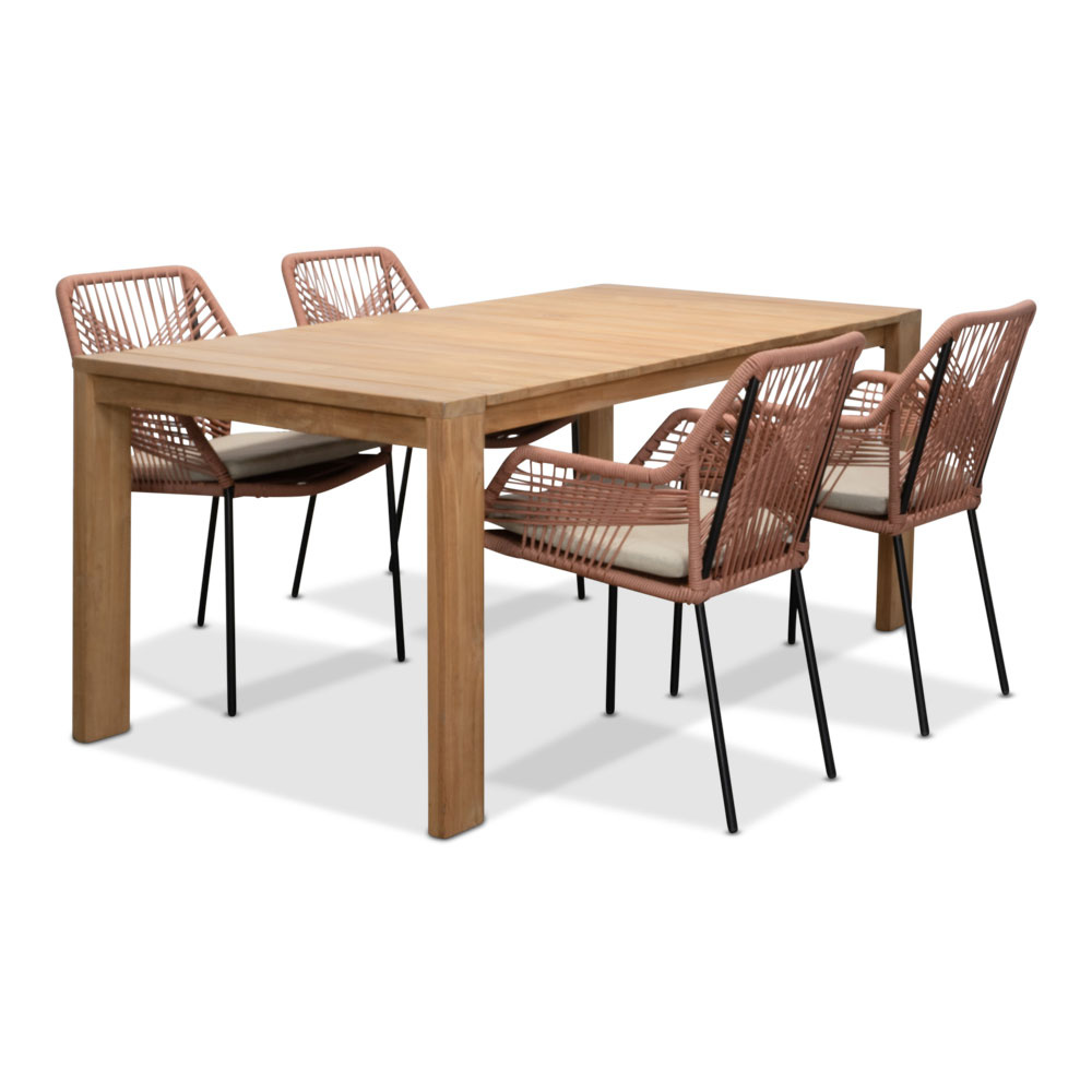 De Oakland/Seville terra dining tuinset 5-delig is van het merk buiten living en is hier verkrijgbaar in de kleur natural teak, rood.