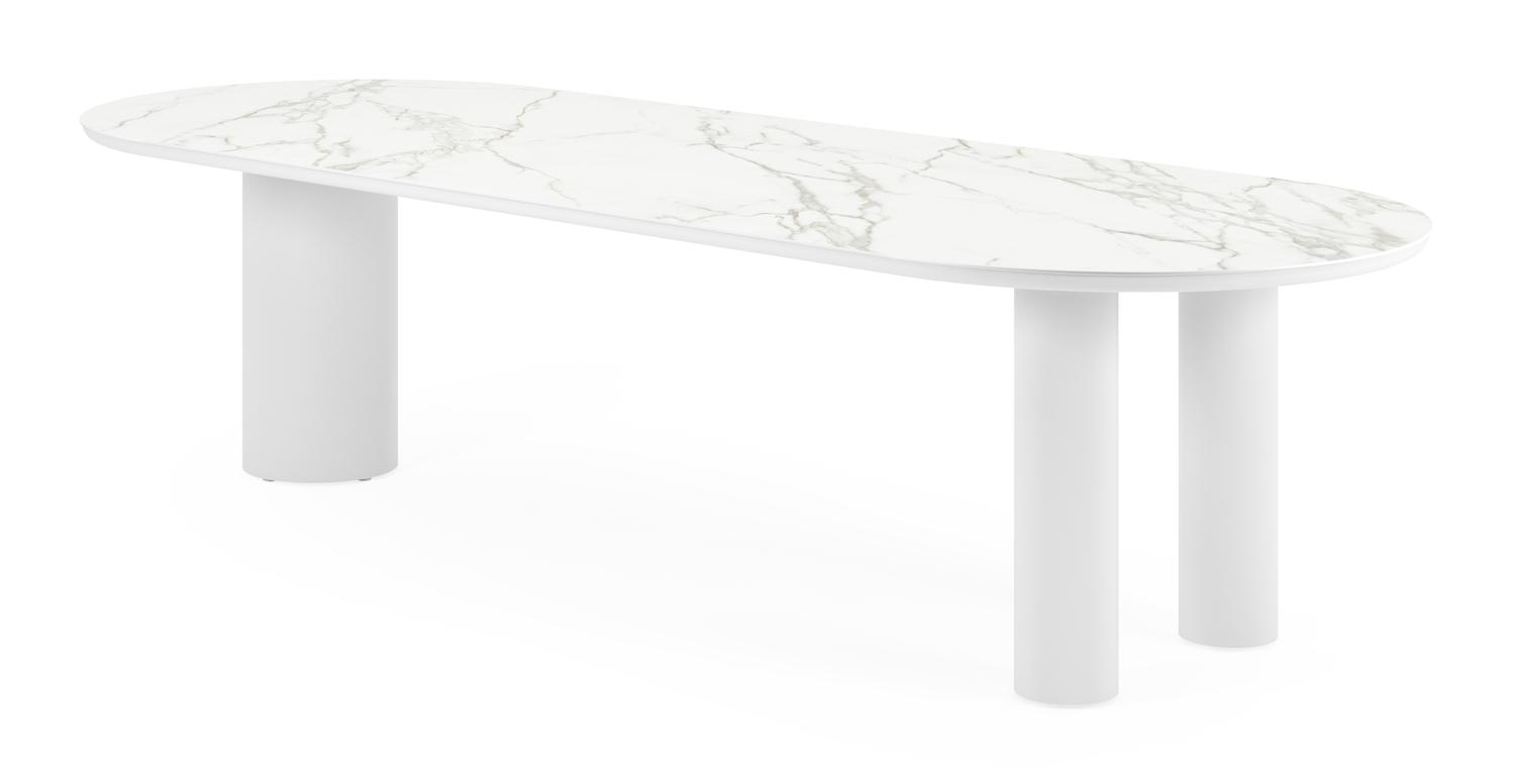 De Organo tuintafel bootvorm in wit aluminium en volkeramiek calacatta – L 300 x B 110 x H 74 cm is van het merk Bristolà la carte en is hier verkrijgbaar in de kleur wit.