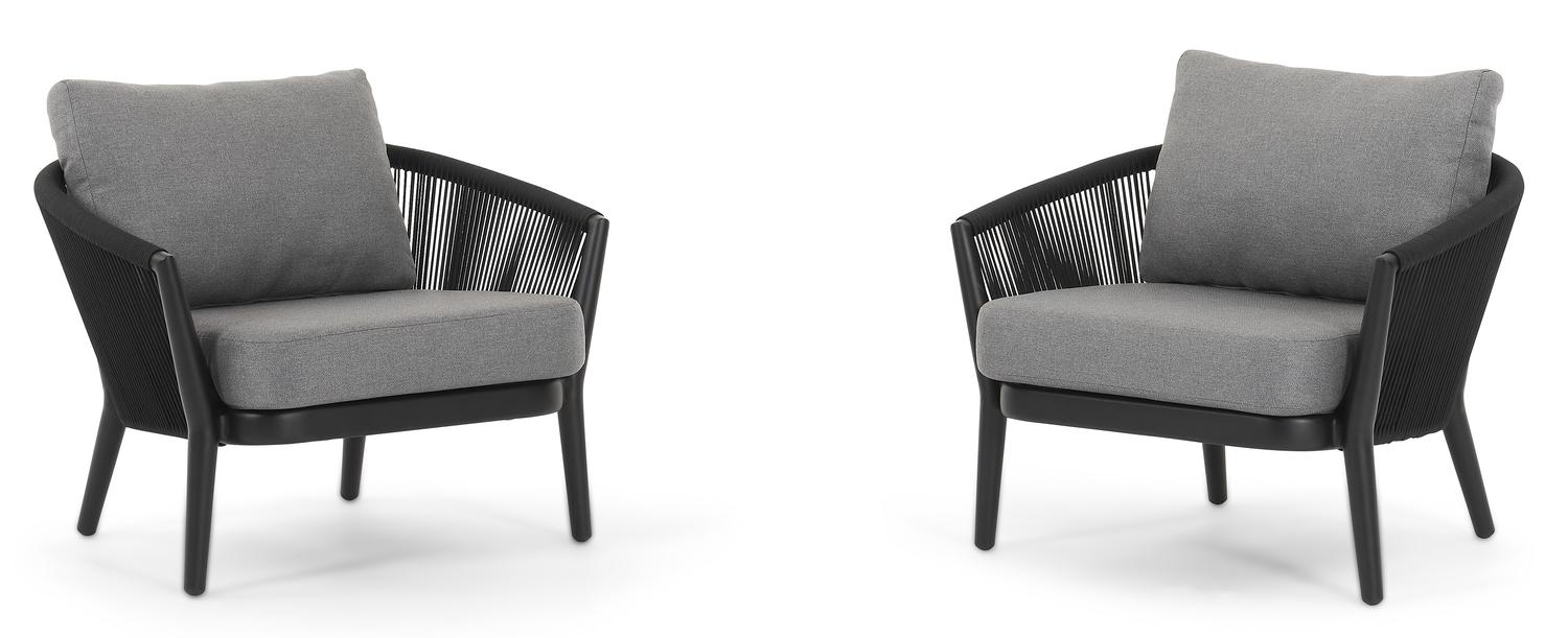 Orso loungeset in zwart aluminium en aluminium met grijs weather+ softtouch kussens