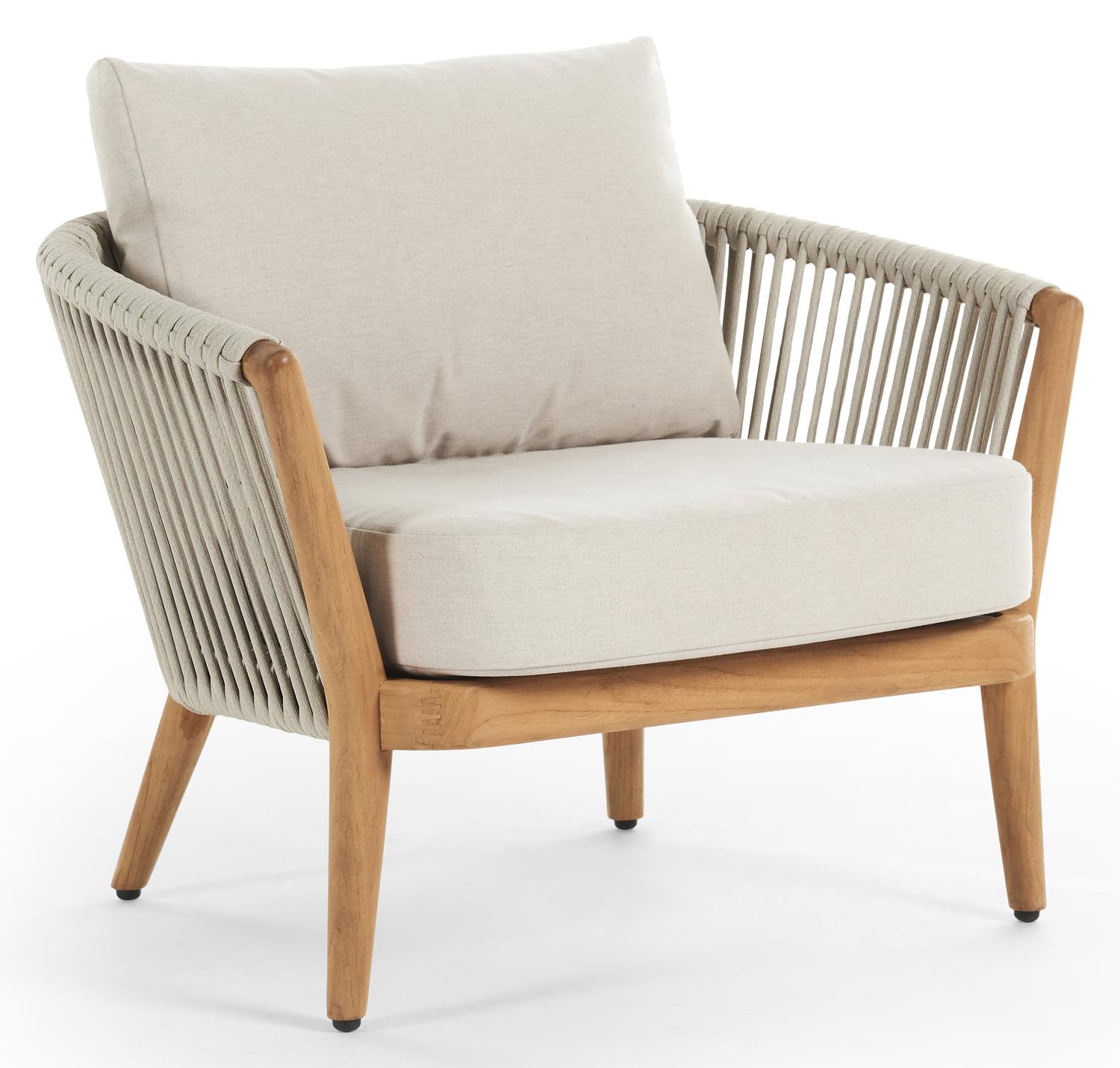 De Orso loungestoel in teak en beige verticaal geweven luxe vlakke rope met heritage papyrus all weather sunbrella® luxe kussen is van het merk Bristolà la carte en is hier verkrijgbaar in de kleur naturel/beige.