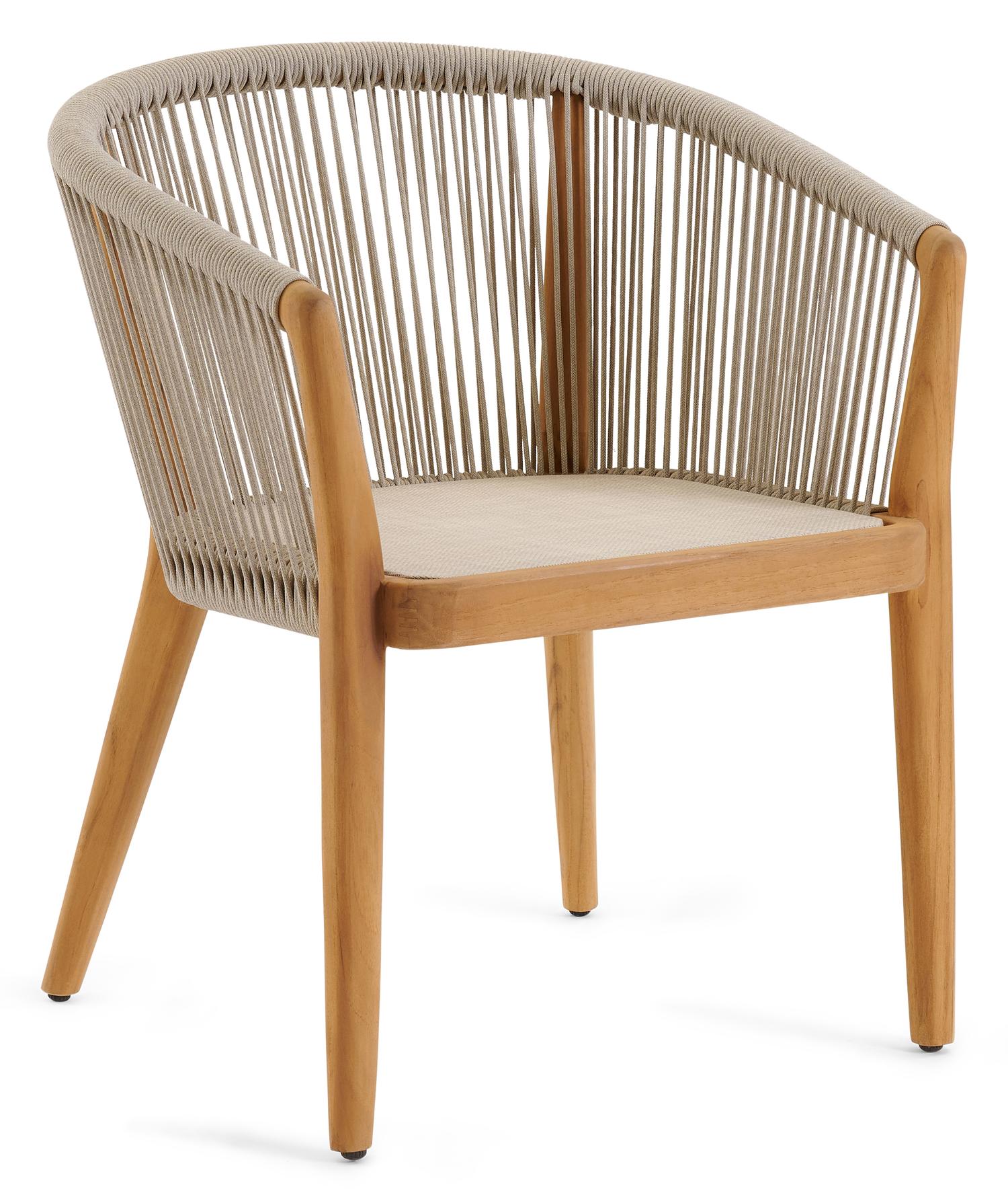 De Orso tuinstoel in teak en beige verticaal geweven ronde rope is van het merk Bristolà la carte en is hier verkrijgbaar in de kleur beige/naturel.