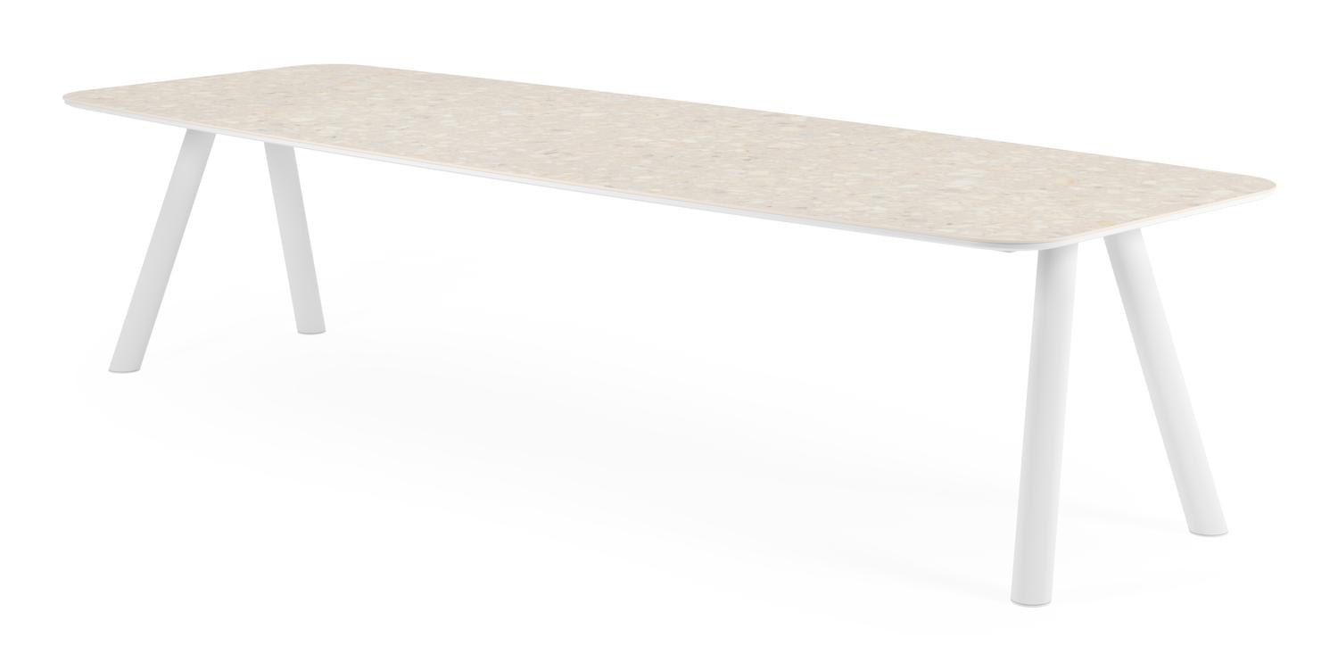 Orso tuintafel bootvorm in wit aluminium en volkeramiek retrostone – L 315 x B 115 x H 73.5 cm