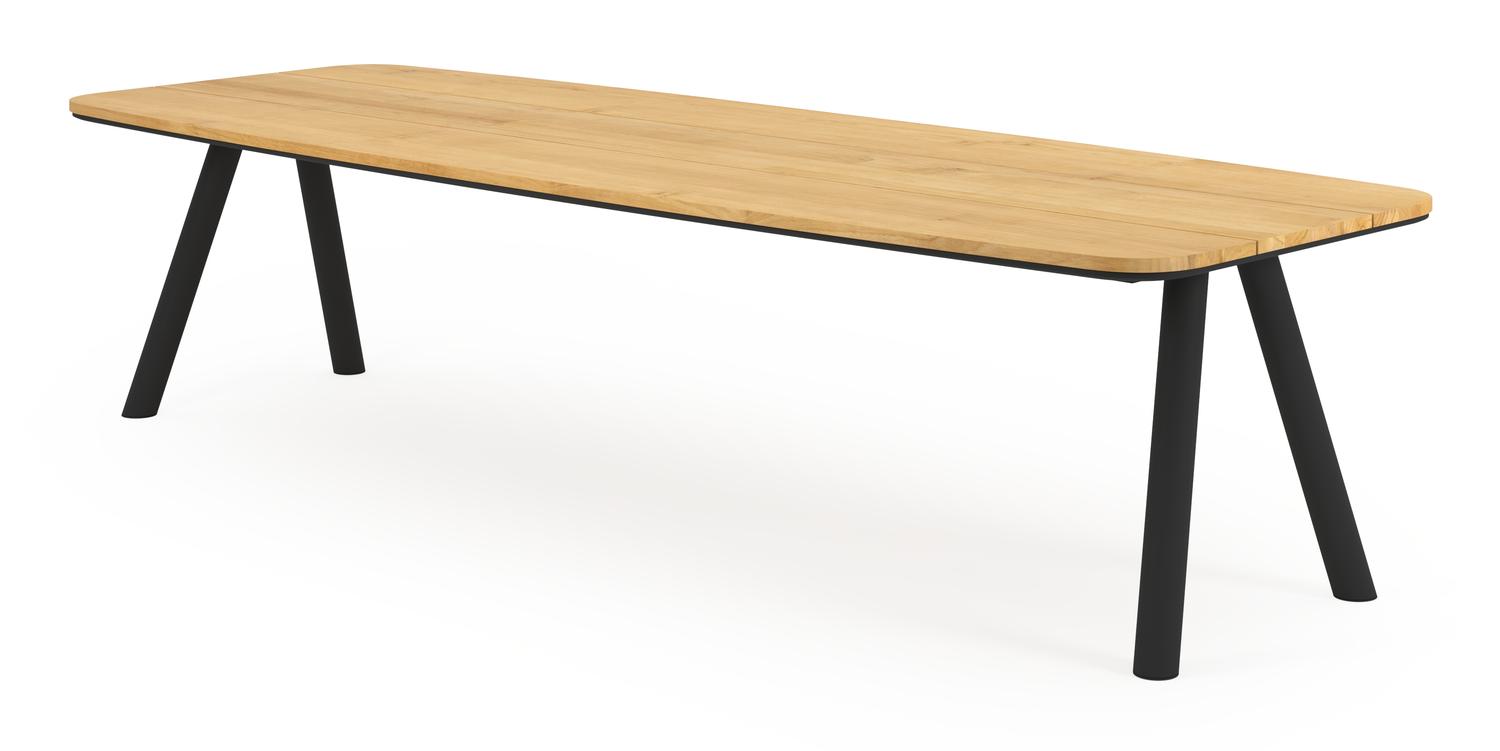 Orso tuintafel bootvorm in zwart aluminium en teak – L 315 x B 115 x H 73.5 cm
