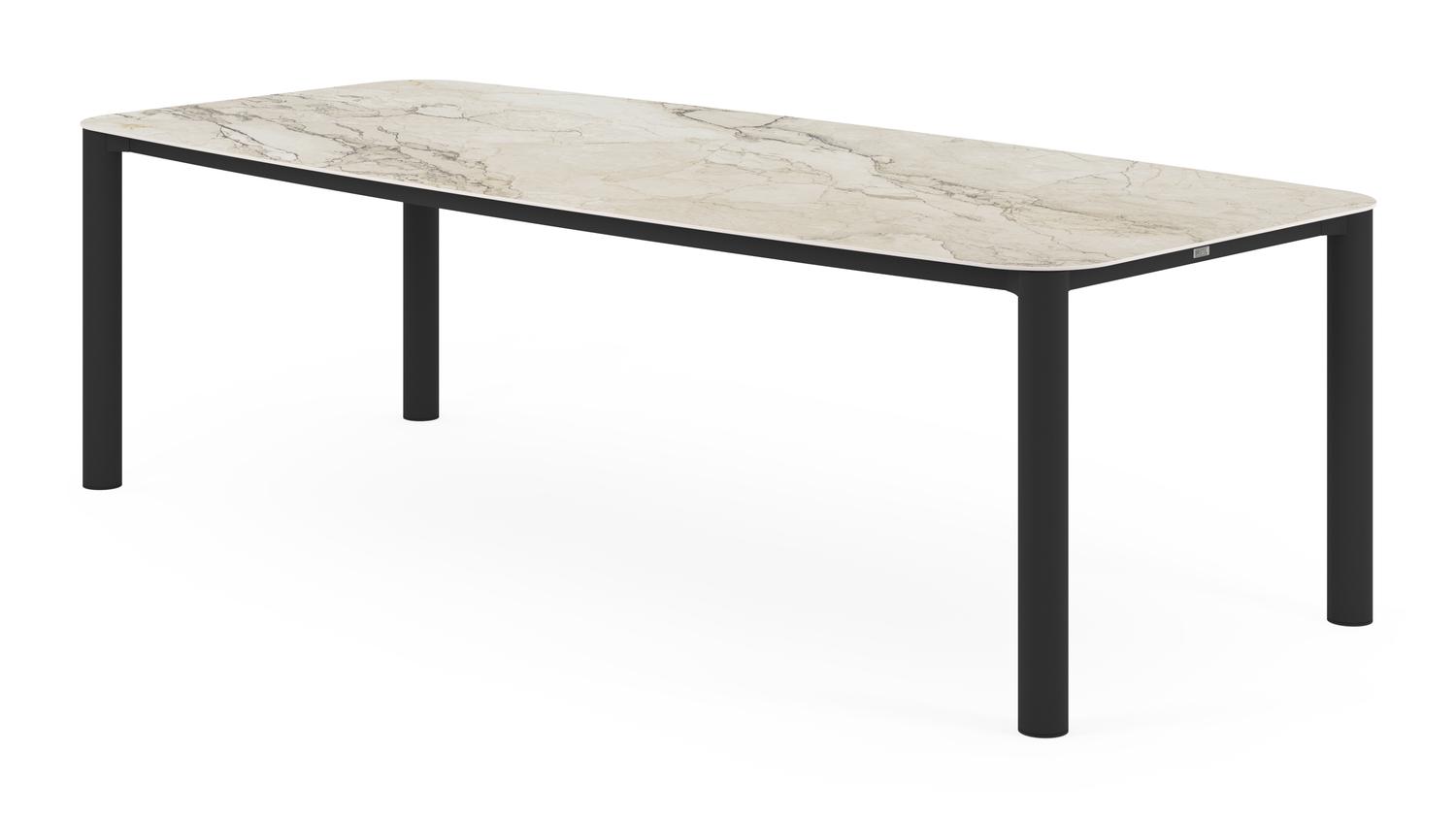 De Orso tuintafel bootvorm in zwart aluminium en volkeramiek colorado dunes – L 255 x B 115 x H 74.5 cm is van het merk Bristolà la carte en is hier verkrijgbaar in de kleur zwart/beige.
