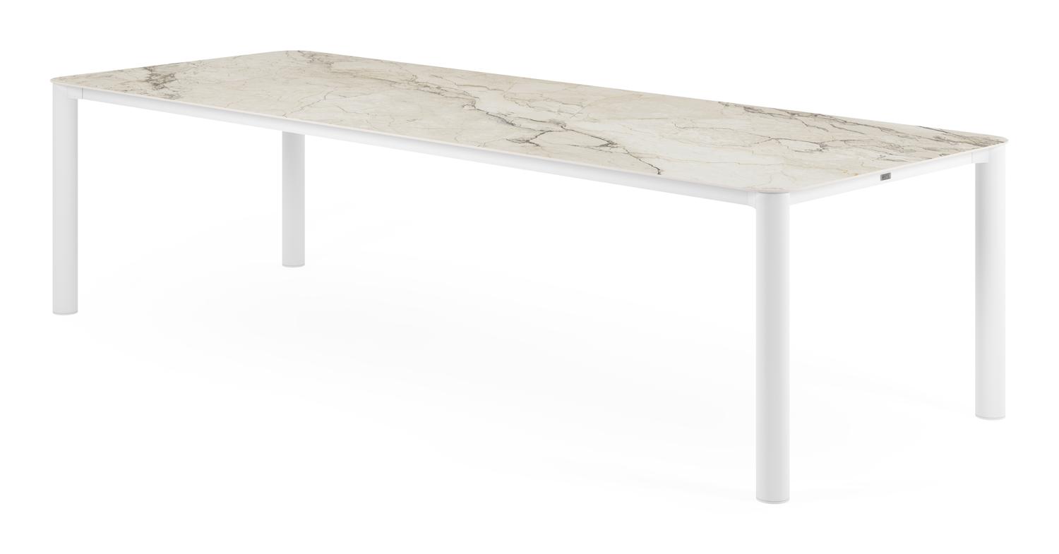 De Orso tuintafel rechthoekig afgerond in wit aluminium en volkeramiek colorado dunes – L 290 x B 110 x H 73.5 cm is van het merk Bristolà la carte en is hier verkrijgbaar in de kleur wit/beige.