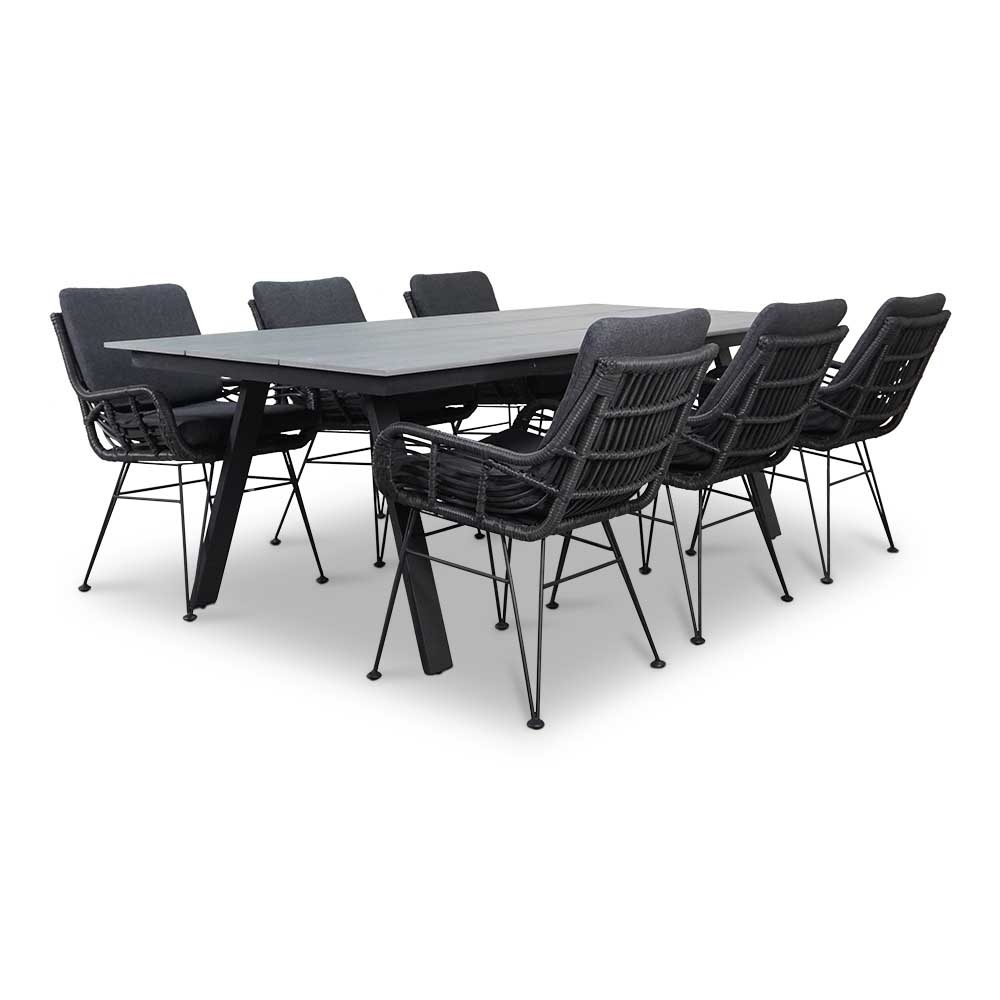 De Oslo Grey/Carlos Charcoal dining tuinset 7-delig is van het merk lux outdoor living en is hier verkrijgbaar in de kleur light teak, zwart.