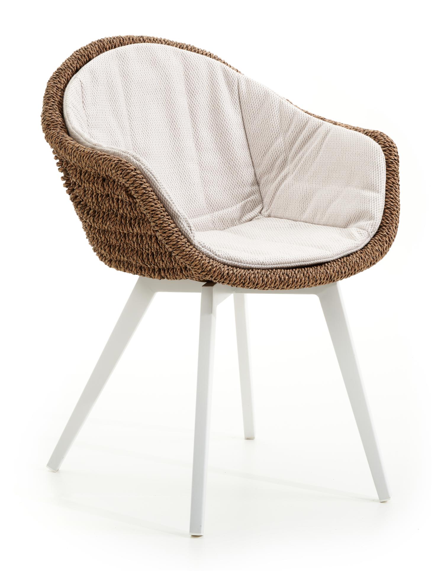 De Pagino tuinstoel in wit aluminium en bruin ronde wicker met kussen in lopi marble all weather sunbrella® luxe is van het merk Bristolà la carte en is hier verkrijgbaar in de kleur wit/bruin.