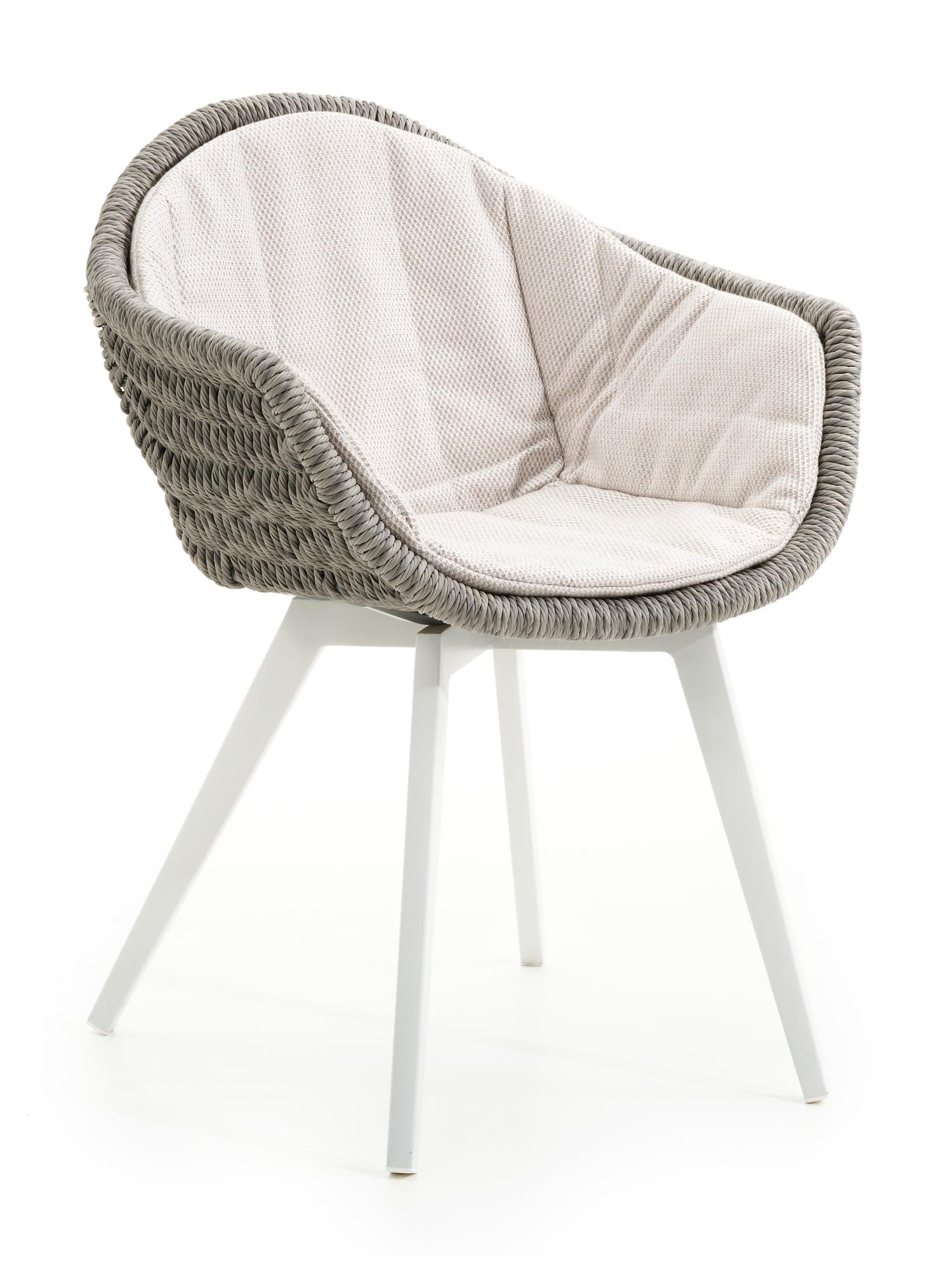 De Pagino tuinstoel in wit aluminium en grijs ronde wicker met kussen in lopi marble all weather sunbrella® luxe is van het merk Bristolà la carte en is hier verkrijgbaar in de kleur wit/grijs.