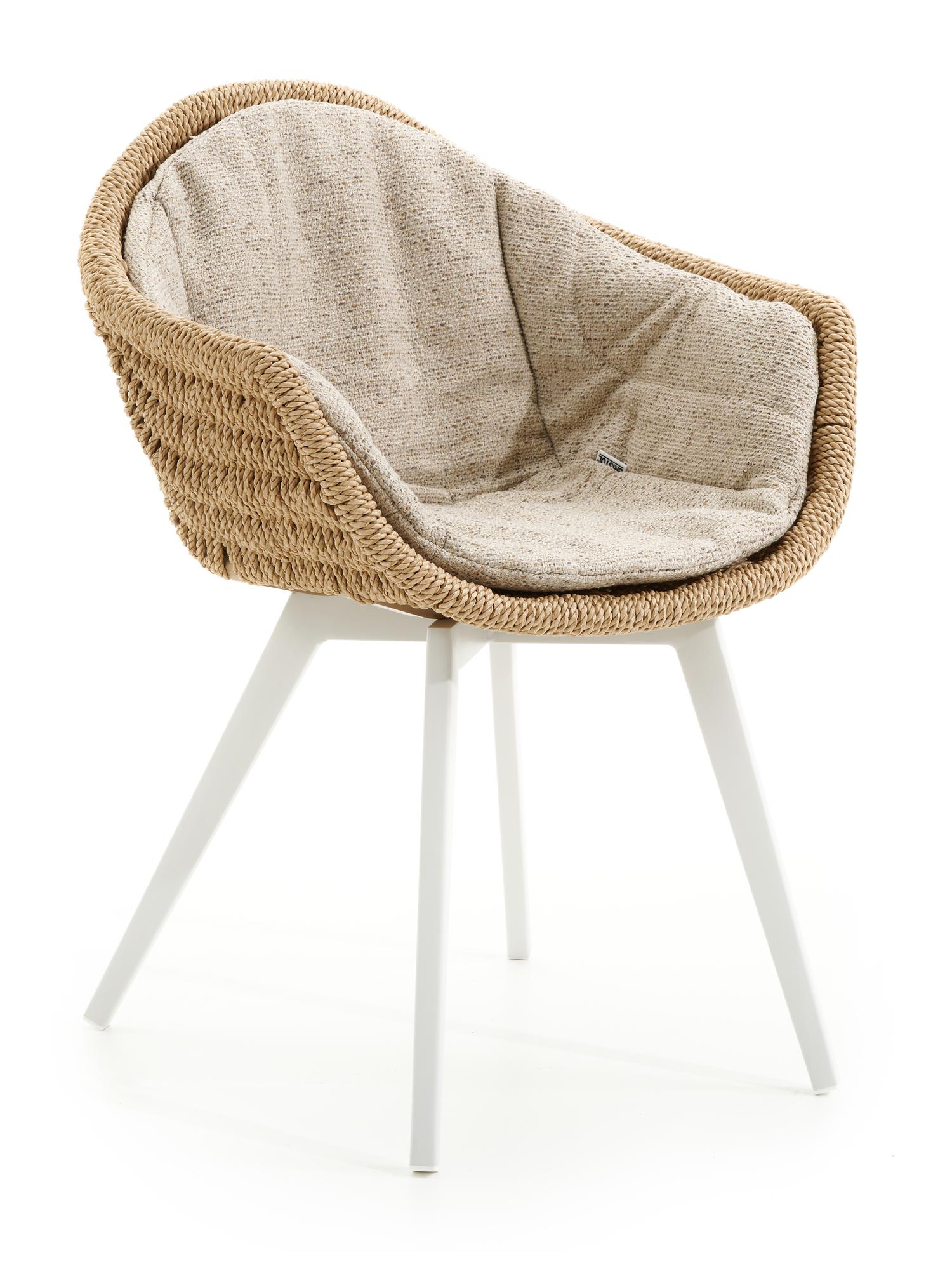 Pagino tuinstoel in wit aluminium en naturel ronde wicker met kussen in bora desert all weather cosytica