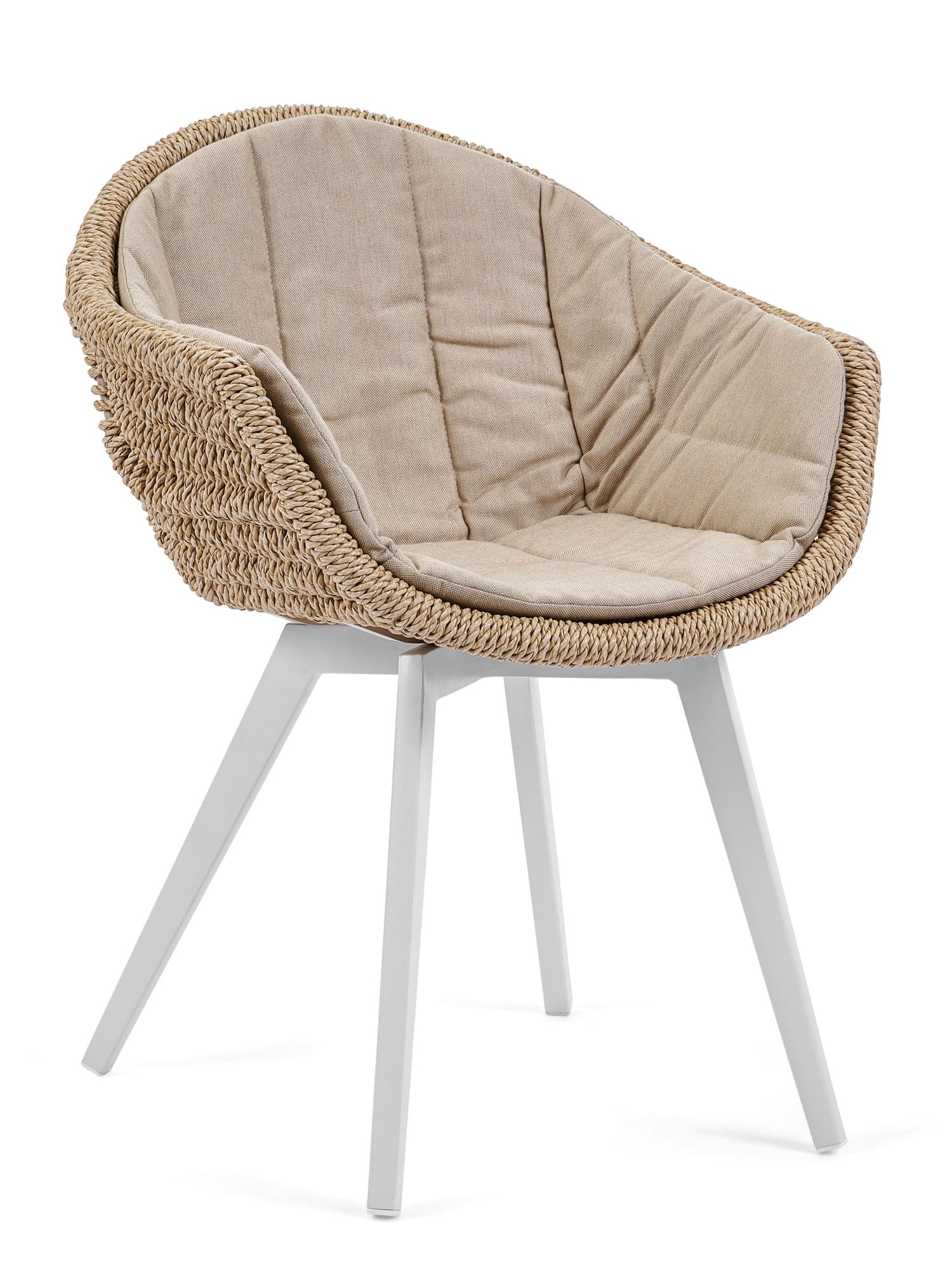 Pagino tuinstoel in wit aluminium en naturel ronde wicker met kussen in natte heather beige all weather sunbrella® luxe kopen?