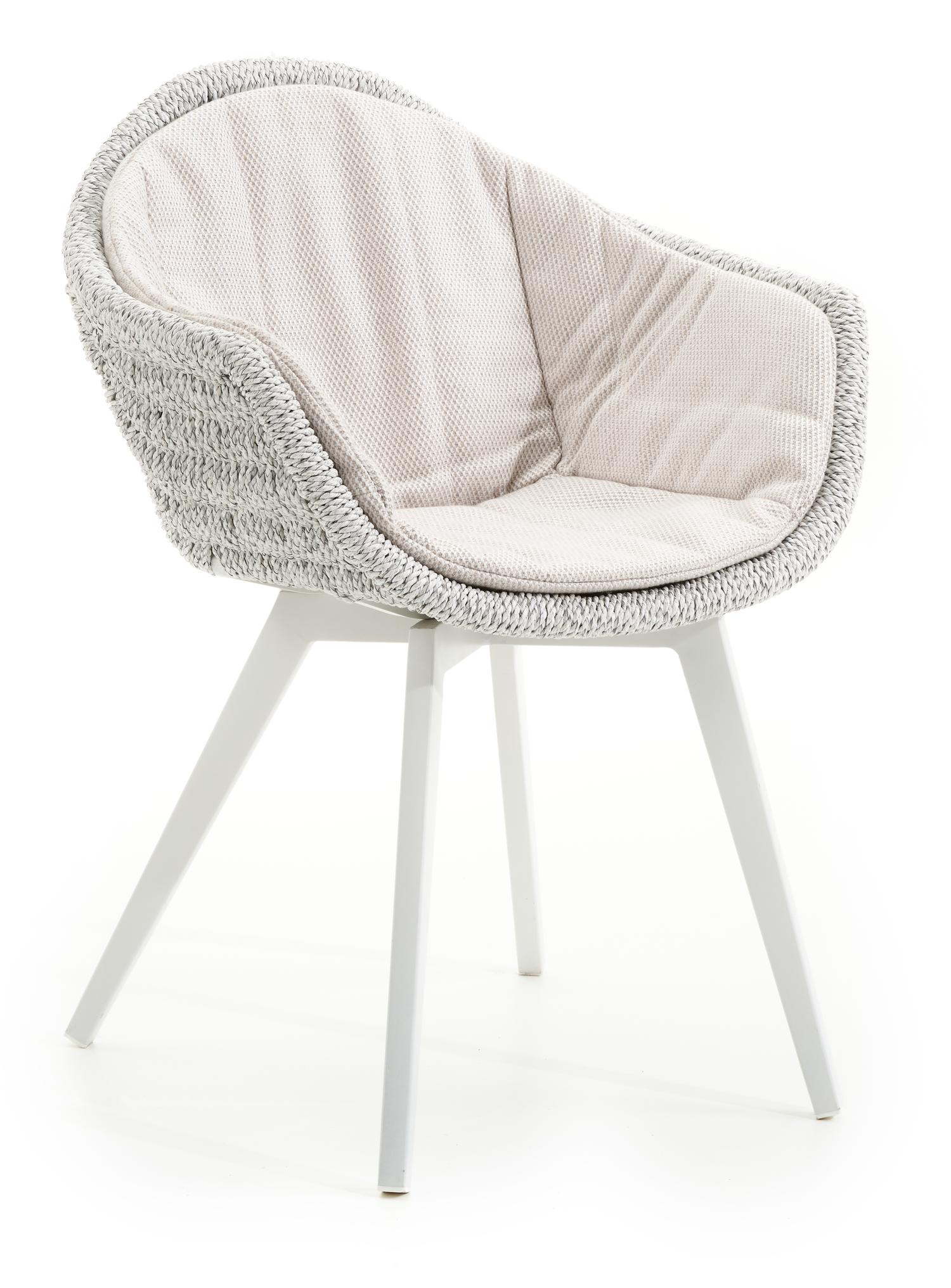 De Pagino tuinstoel in wit aluminium en wit ronde wicker met kussen in lopi marble all weather sunbrella® luxe is van het merk Bristolà la carte en is hier verkrijgbaar in de kleur wit.