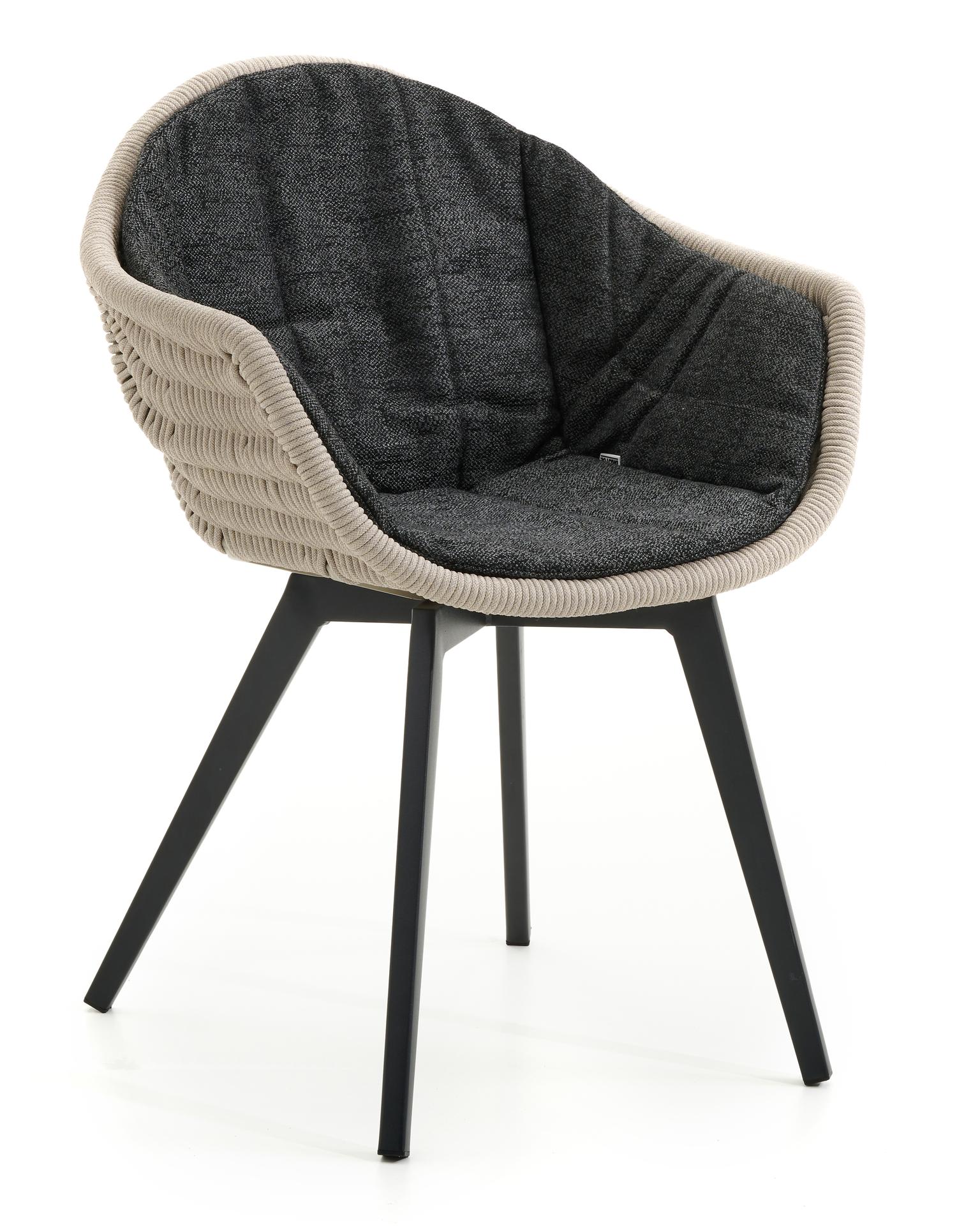 Pagino tuinstoel in zwart aluminium en beige ronde wicker met kussen in chartres sooty all weather sunbrella® luxe