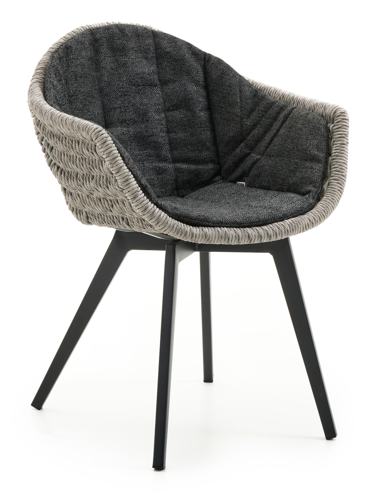 De Pagino tuinstoel in zwart aluminium en grijs ronde wicker met kussen in chartres sooty all weather sunbrella® luxe is van het merk Bristolà la carte en is hier verkrijgbaar in de kleur zwart/grijs.