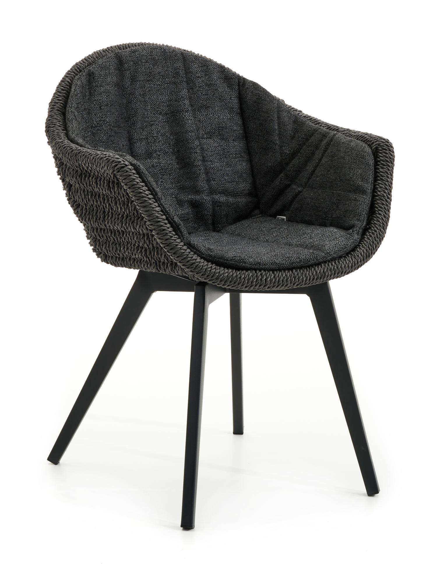 De Pagino tuinstoel in zwart aluminium en zwart ronde wicker met kussen in chartres sooty all weather sunbrella® luxe is van het merk Bristolà la carte en is hier verkrijgbaar in de kleur zwart.