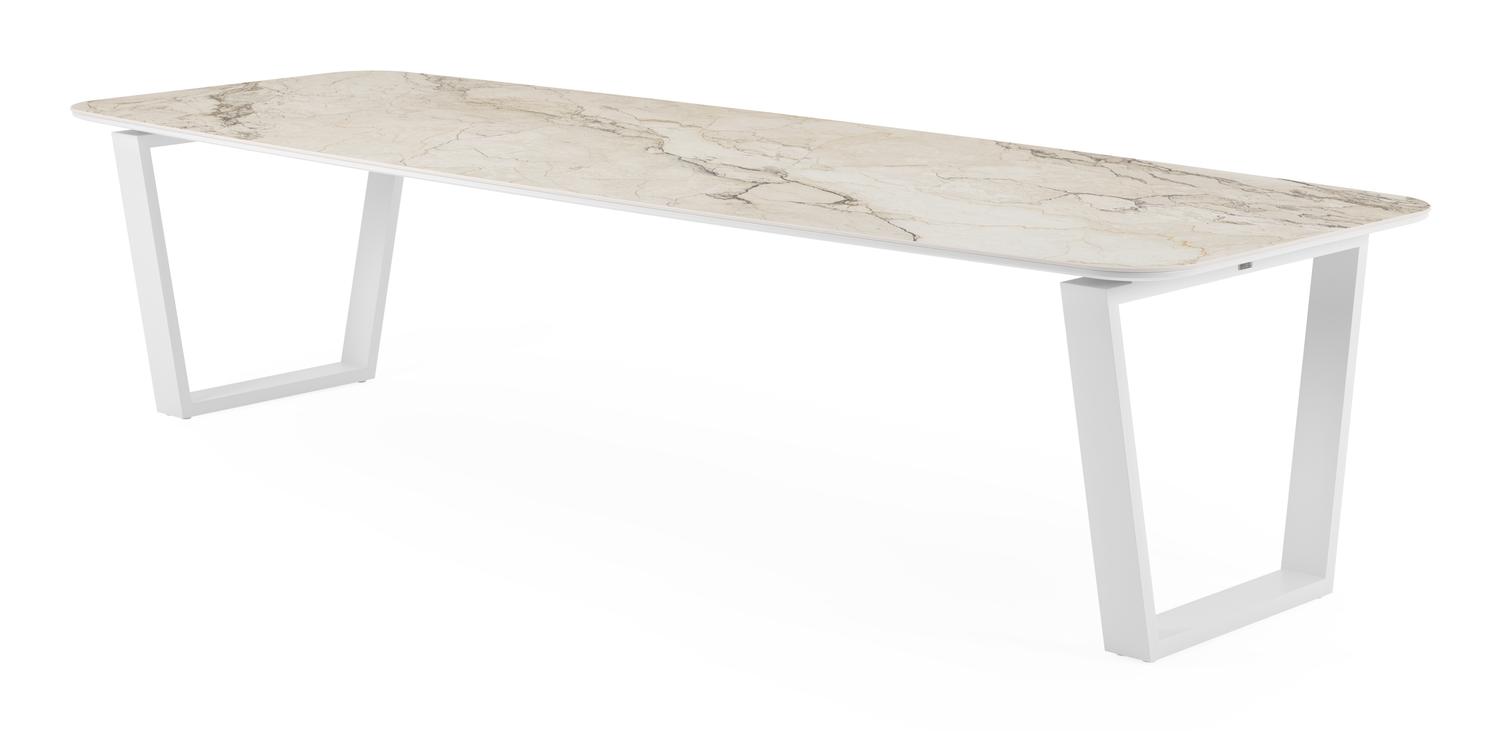 De Pagino tuintafel bootvorm in wit aluminium en volkeramiek colorado dunes – L 315 x B 115 x H 73 cm is van het merk Bristolà la carte en is hier verkrijgbaar in de kleur wit/beige.