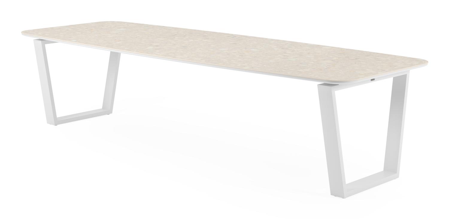 De Pagino tuintafel bootvorm in wit aluminium en volkeramiek retrostone – L 315 x B 115 x H 73 cm is van het merk Bristolà la carte en is hier verkrijgbaar in de kleur wit/beige.