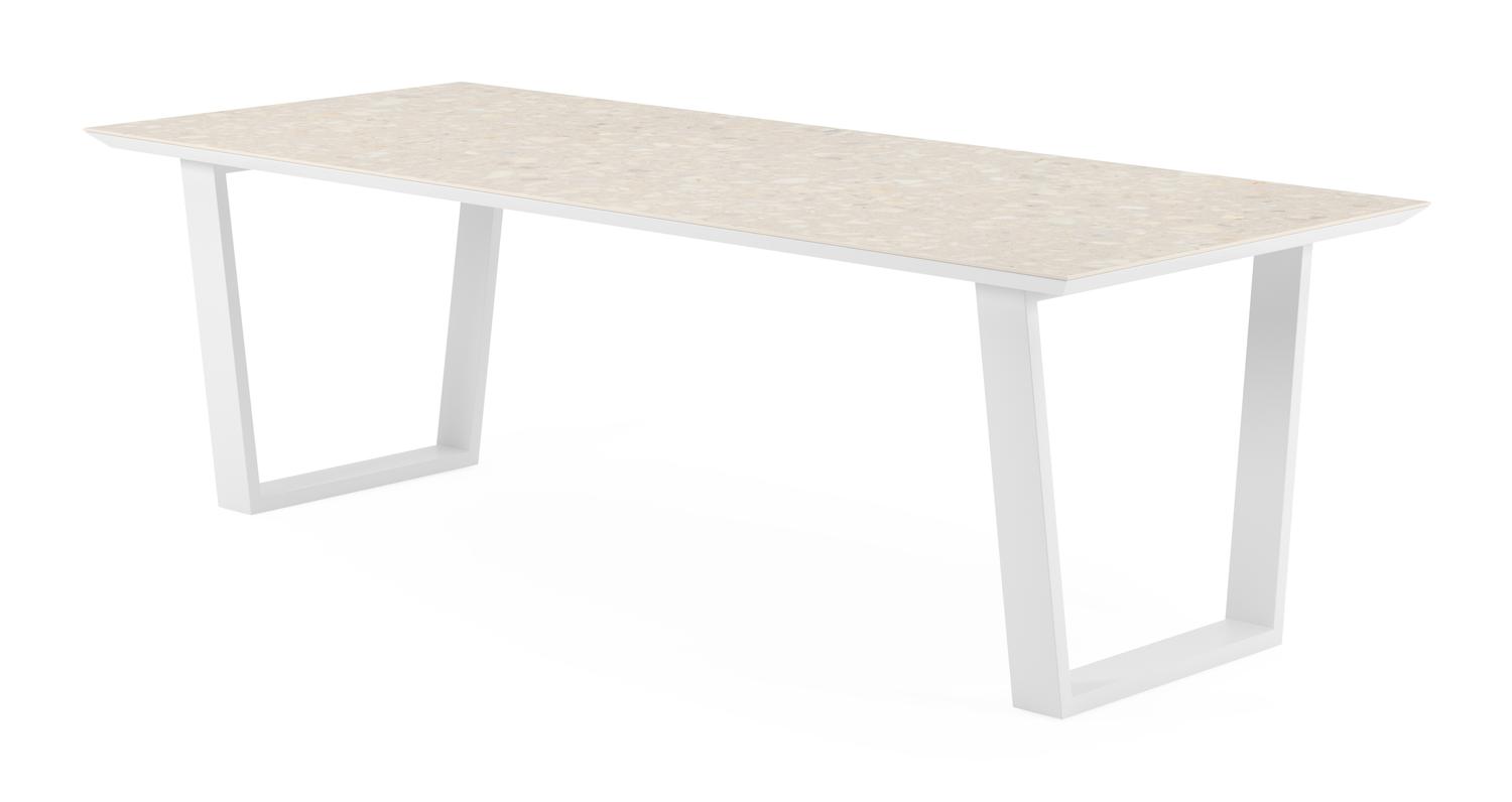 De Pagino tuintafel rechthoekig in wit aluminium en volkeramiek retrostone – L 240 x B 100 x H 73.5 cm is van het merk Bristolà la carte en is hier verkrijgbaar in de kleur wit/beige.