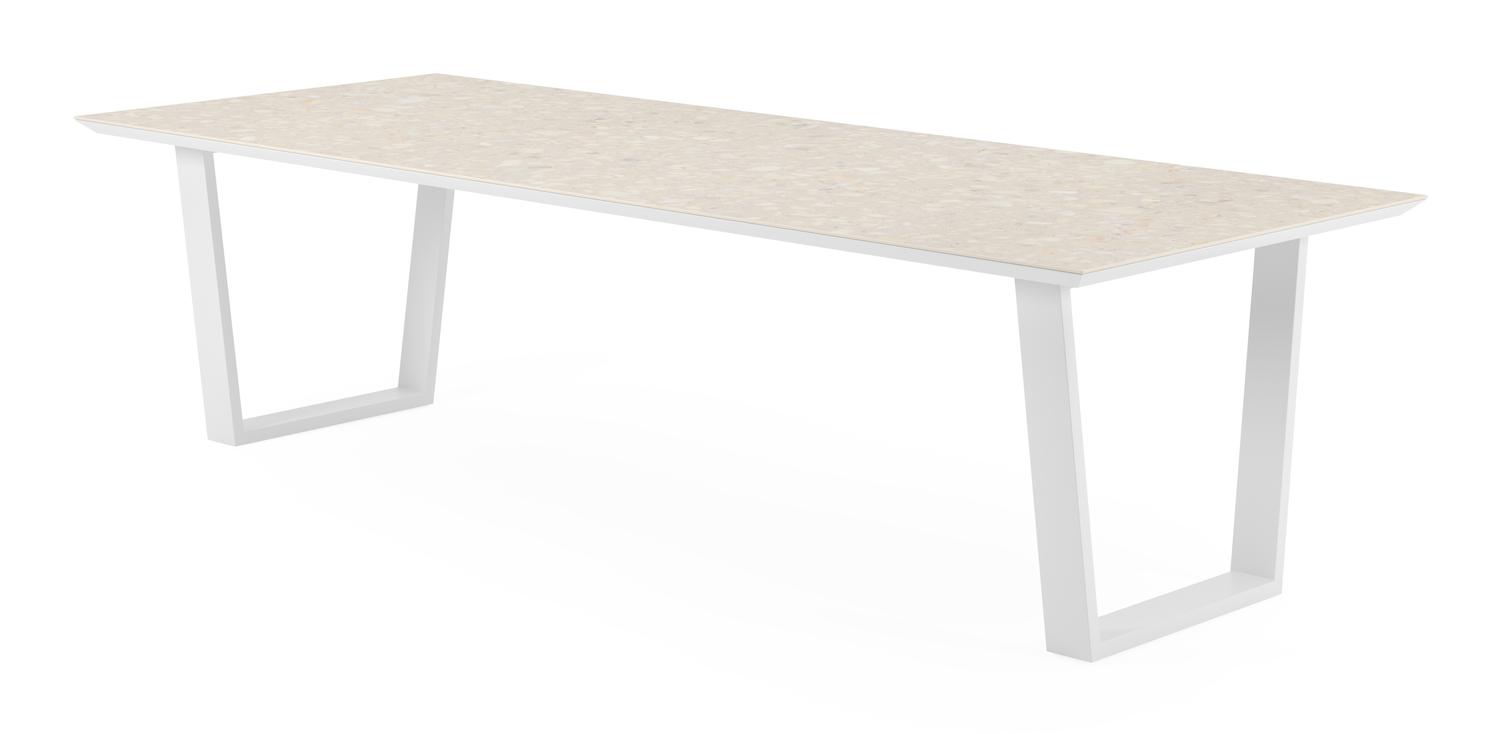 De Pagino tuintafel rechthoekig in wit aluminium en volkeramiek retrostone – L 280 x B 110 x H 73.5 cm is van het merk Bristolà la carte en is hier verkrijgbaar in de kleur wit/beige.