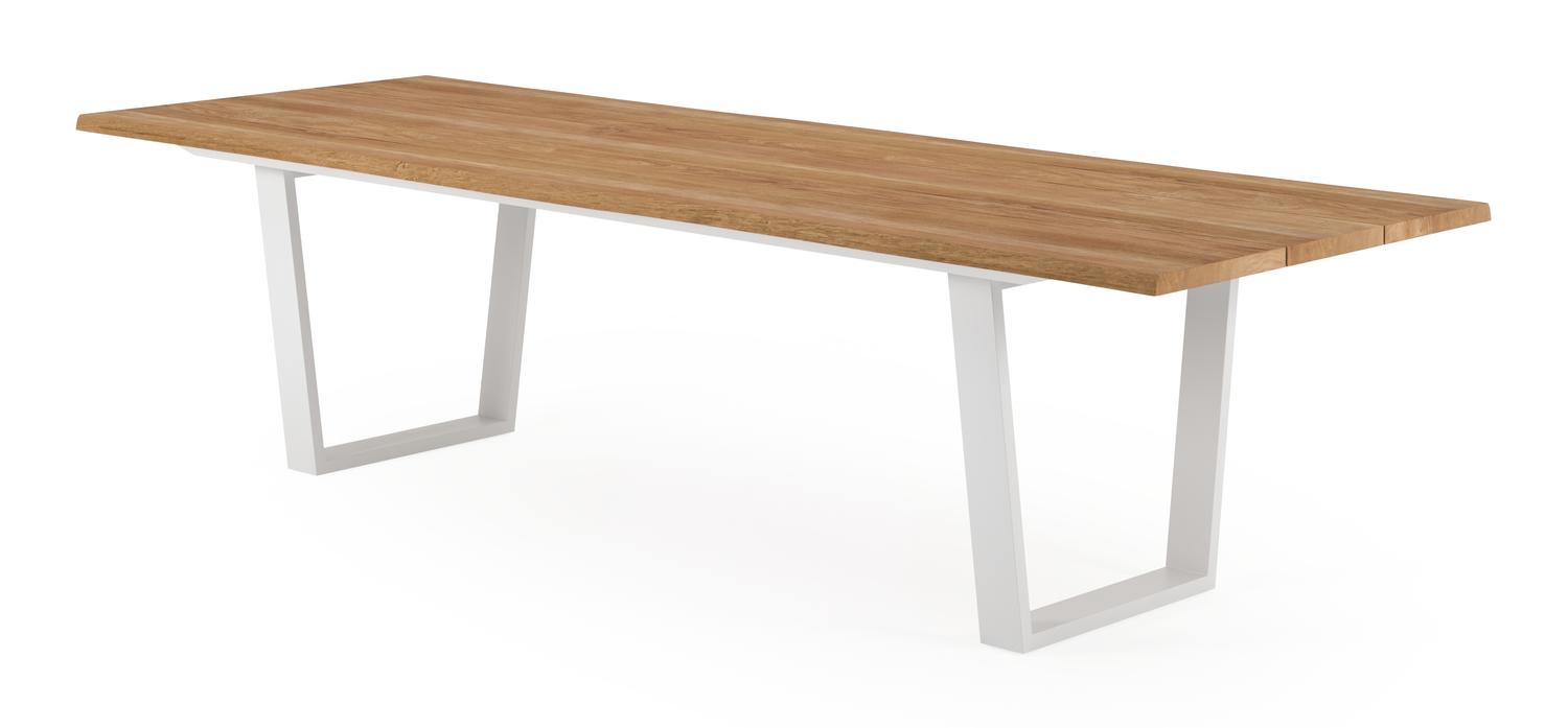Een tafelblad uit teak staat gelijk aan bijzondere kwaliteit en natuurlijk design. Teak is een kwalitatieve houtsoort gekenmerkt door zijn hardheid. Aangezien hout leeft, kan de structuur of kleur licht anders zijn dan op het beeld weergegeven.